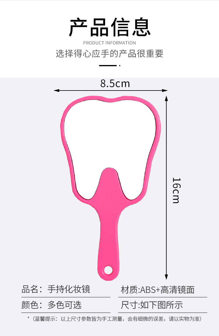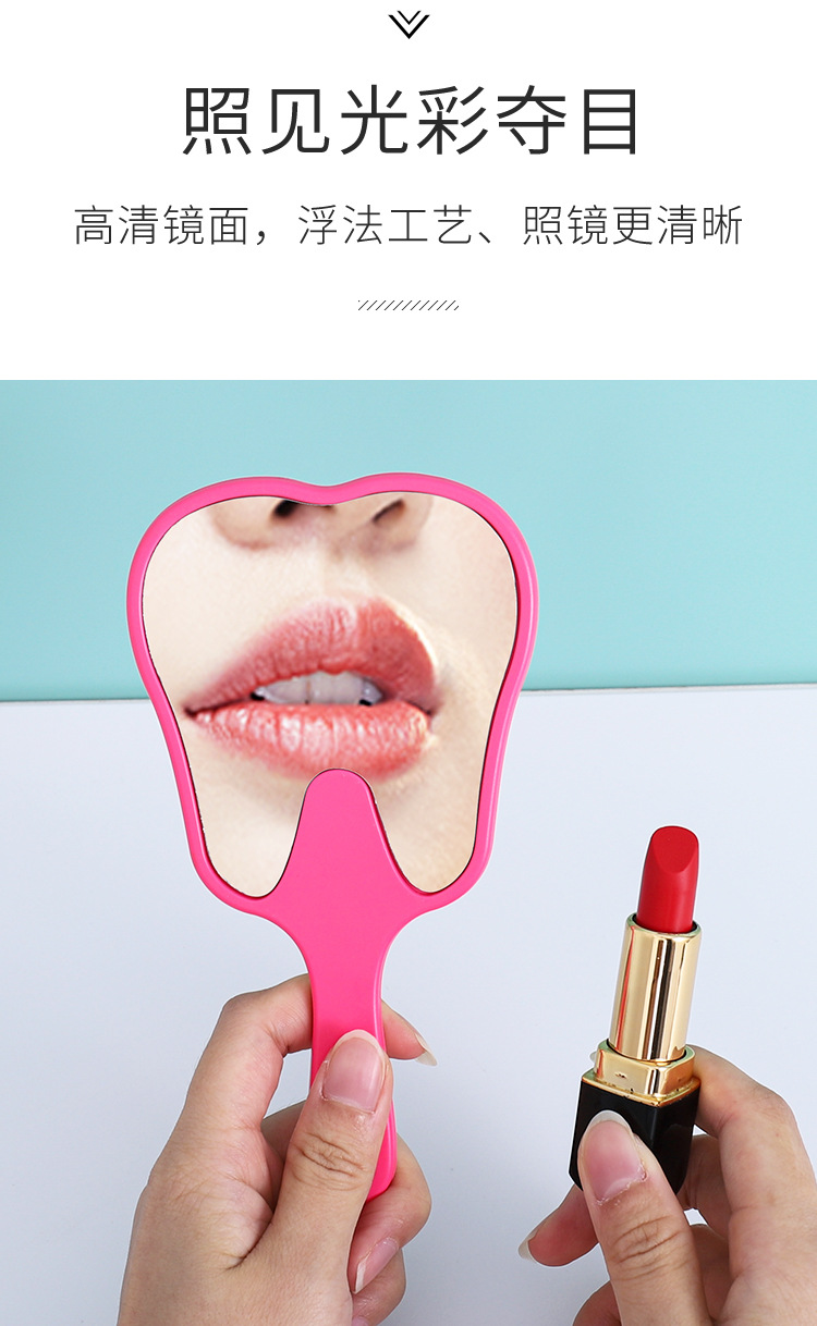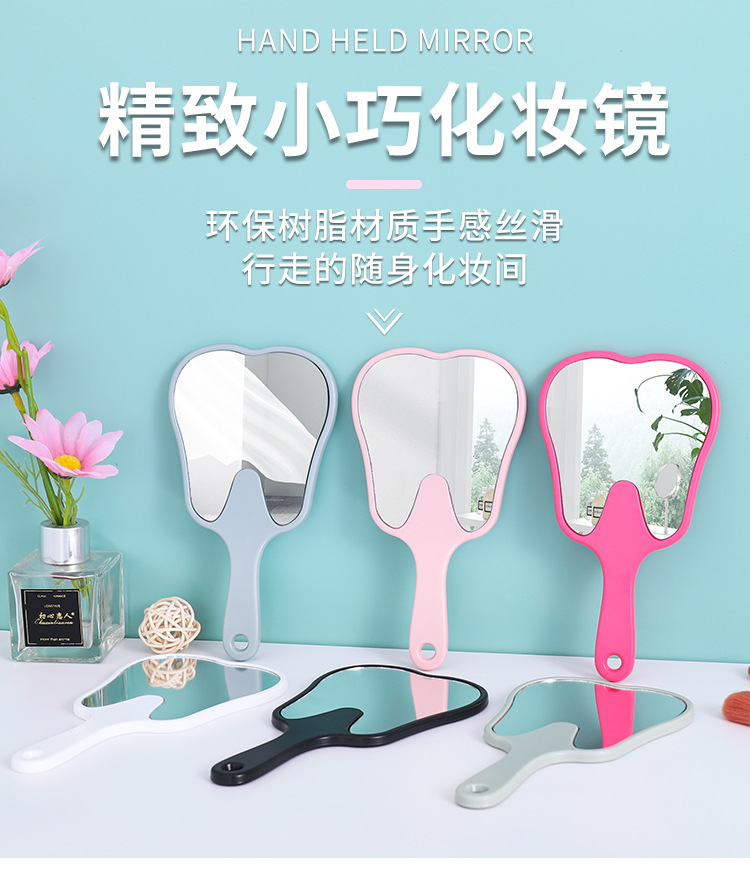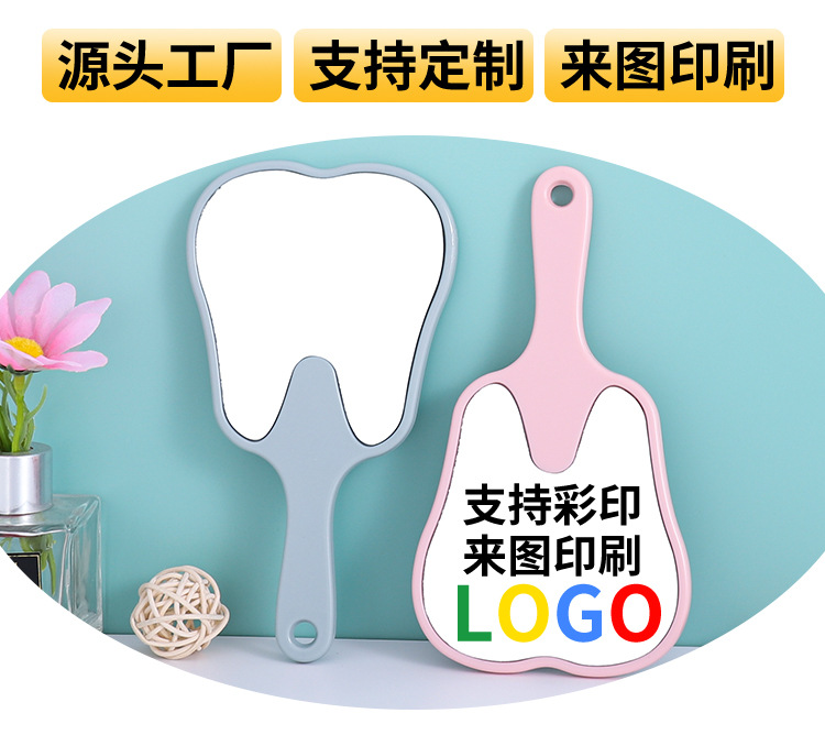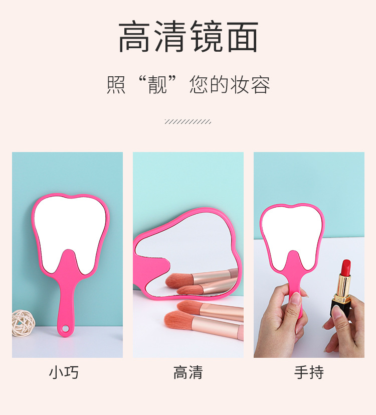 Espejo portátil en forma de diente pequeño clínico dental HD espejo de mano multicolor publicitario