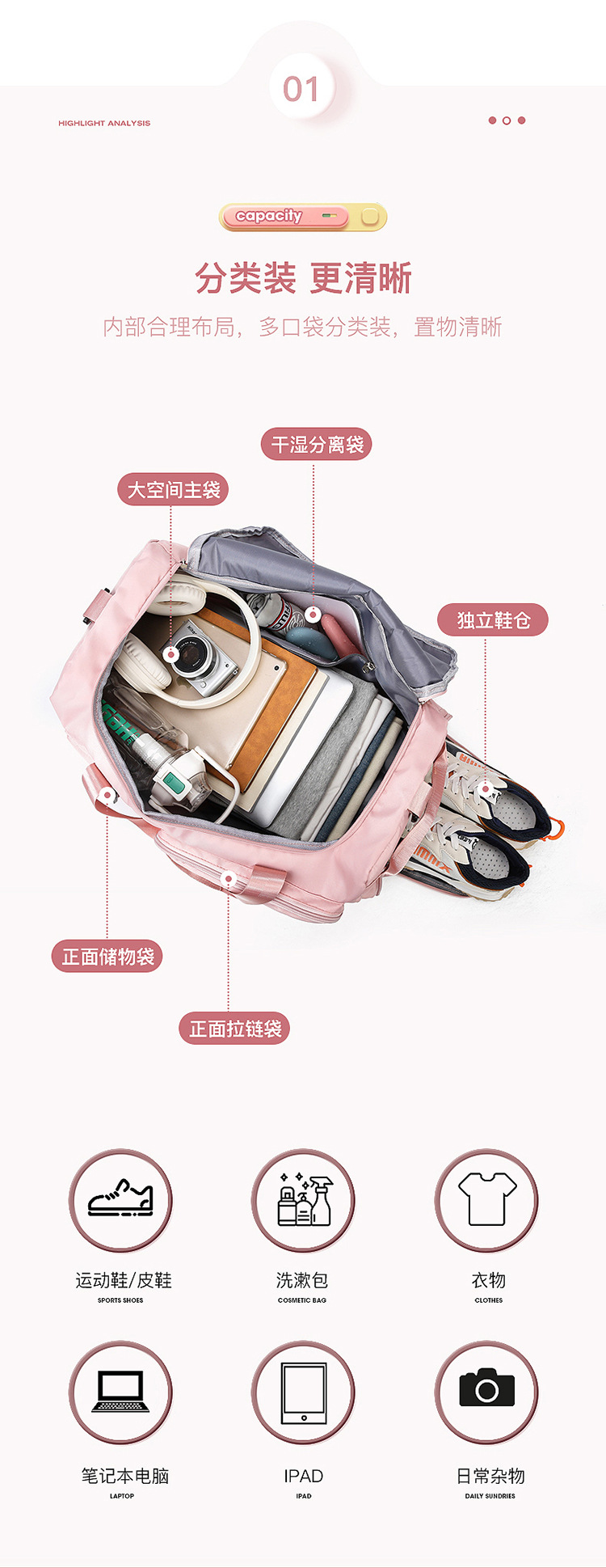 | 1 | Bolsa de equipaje oculta para hombros bolsa de zapatos independiente almacén de zapatos bolsa de yoga |