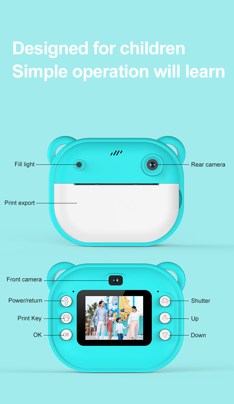 | Color | Rosa, azul, morado taro, verde turquesa, tarjeta de memoria 32g (sin cámara) |