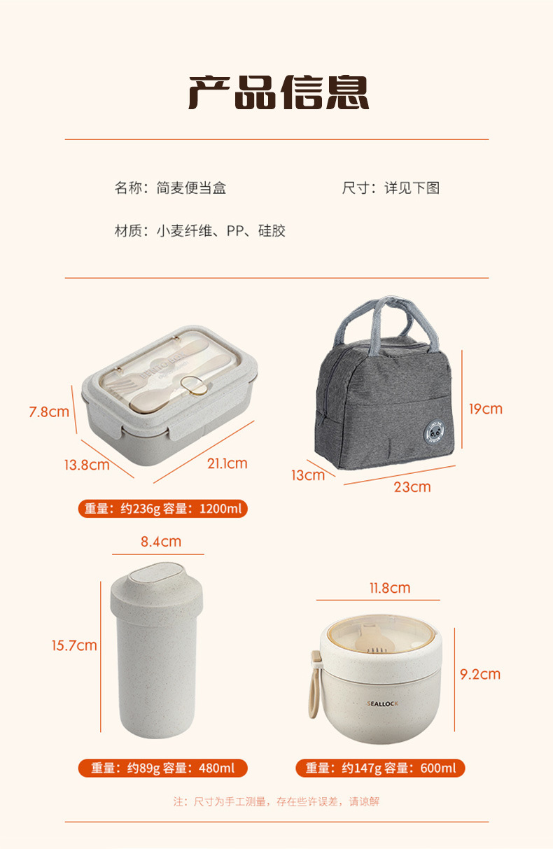 | Especificaciones | Lonchera beige, vaso de agua, tazón de sopa pequeño, lonchera + tazón de sopa, lonchera + taza |