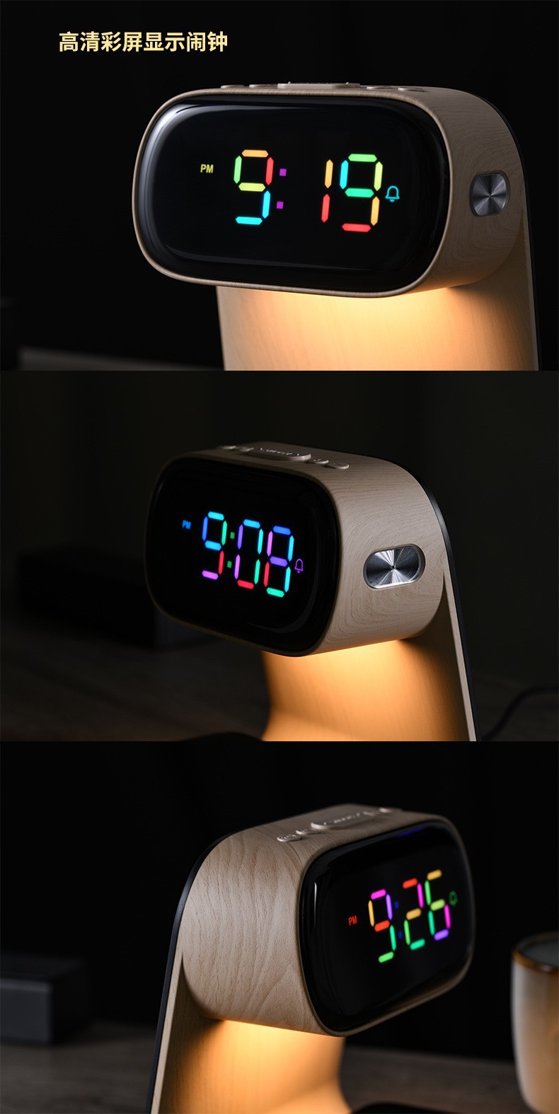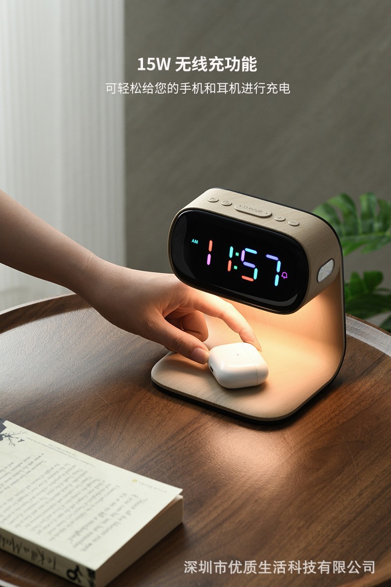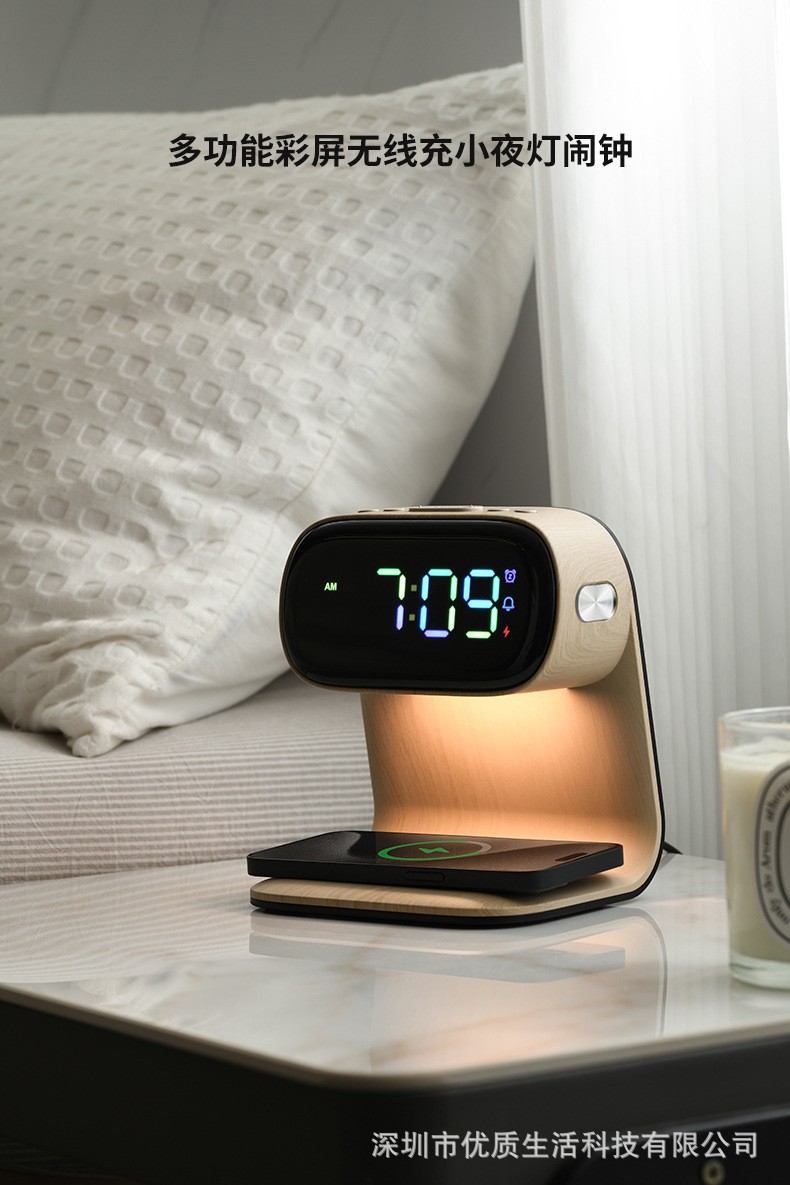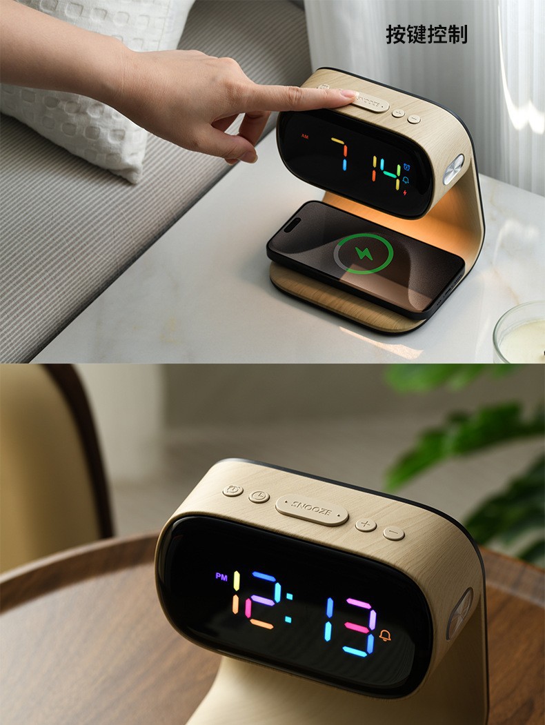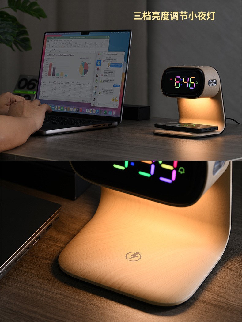 | Atributo 3 | Faro de cama de carga inalámbrica de grano de madera |