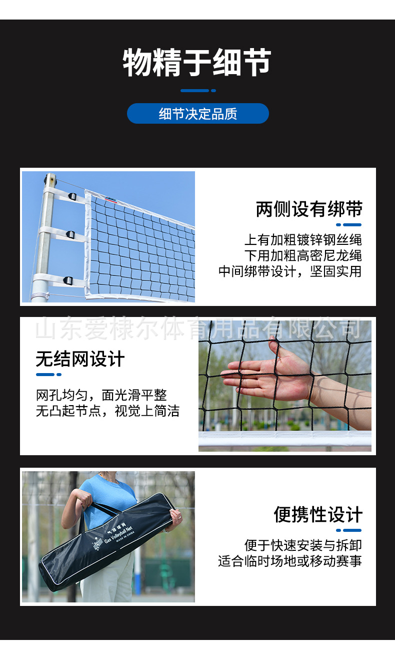 Red de voleibol de gas insignia de Aidi más red de cuerda gruesa 3mm cubierta de cuatro lados con alambre de acero