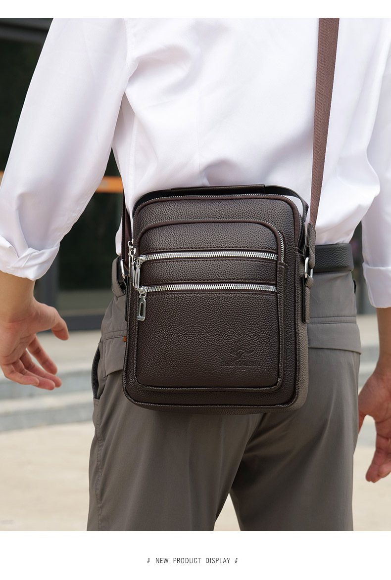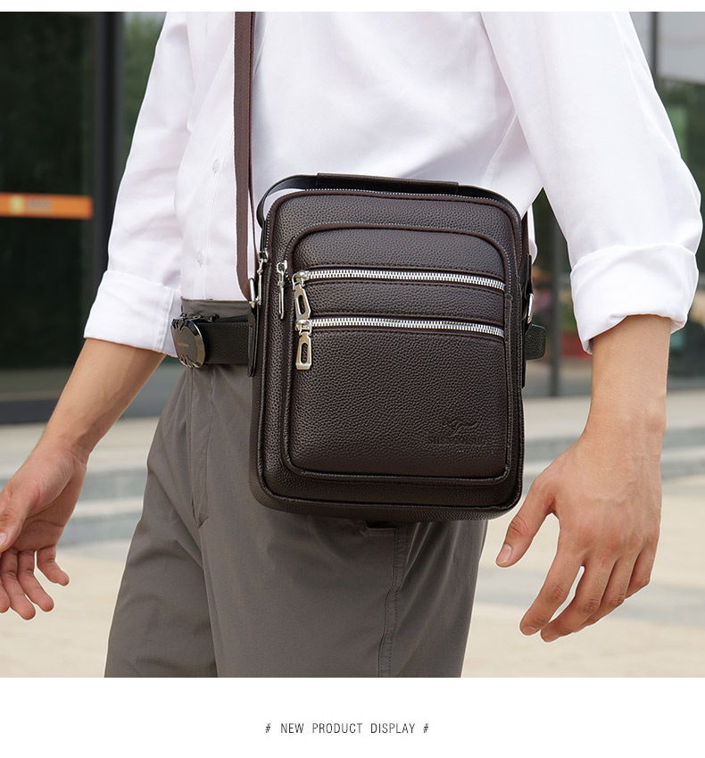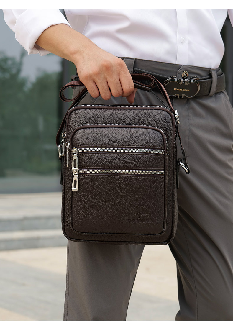 Bolso de hombro para hombre, mensajero de cuero, maletín informal compacto