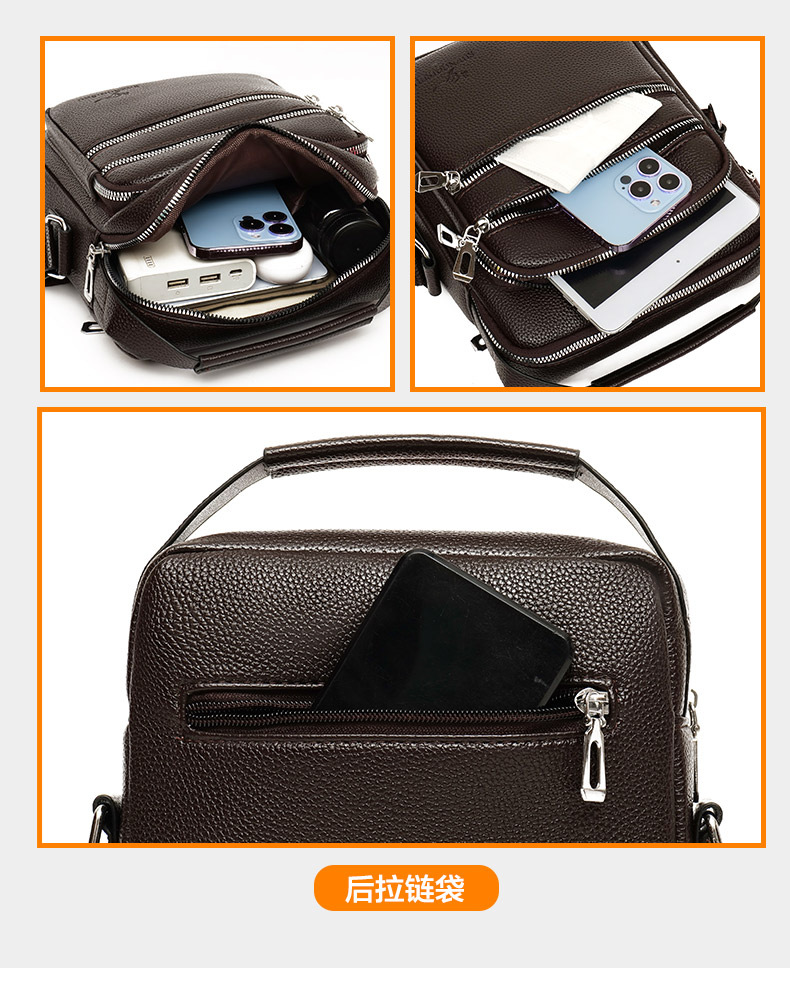 Bandolera de cuero genuino para hombre transfronterizo, mochila cruzada informal de piel de vaca retro para hombre, bolso cruzado multifuncional de gran capacidad
