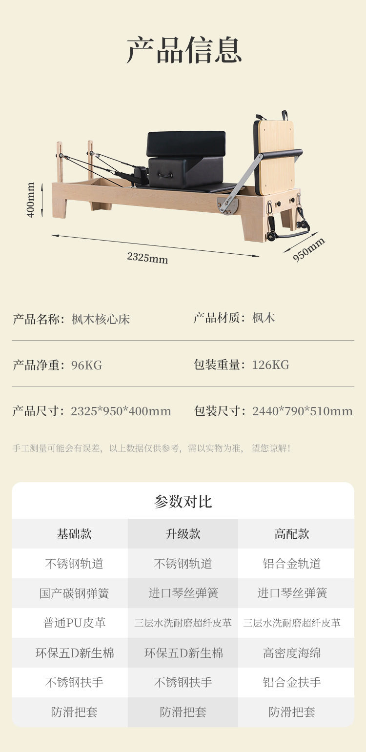 | Especificaciones | Modelo básico de cama central de arce de pista fija,Modelo básico semielevado de cama central de arce de pista fija,Modelo básico de cama de núcleo de arce de pista completa,Cama de núcleo de arce de pista completa modelo básico semi-elevado,Modelo básico de cama central de roble,Modelo básico semielevado de cama central de roble de carril fijo,Modelo básico de cama de núcleo de roble de pista completa,Cama de núcleo de roble de pista completa modelo básico semi-elevado,Modelo básico de barril de escalera de madera de arce,Modelo básico de barril de escalera de hierro de arce,Silla de madera de arce tipo básico,Silla de pedal estable de hierro de arce estilo básico,Caja cuadrada,Ortesis de arce básica,Cadillac de arce básico,Conjunto básico de cinco piezas de arce,Juego básico de cinco piezas de roble,Ortesis de roble básica,Cama blanca pintada de roble,Cadillac de roble básico,Modelo básico tres en uno de arce,Roble tres en uno,Almohadilla de Pilates para embarazadas,Modelo básico de cama blanca pequeña de aleación de aluminio de primera generación,Modelo básico de cama blanca pequeña de aleación de aluminio de segunda generación,Modelo básico de cama blanca pequeña de aleación de aluminio de tercera generación,Modelo básico de cama blanca pequeña de aleación de aluminio de cuarta generación,Aleación de aluminio de generación antigua,Aleación de aluminio de segunda generación antigua,Cama plegable de aleación de aluminio,Manliqiu,Cadillac Manliqiu |