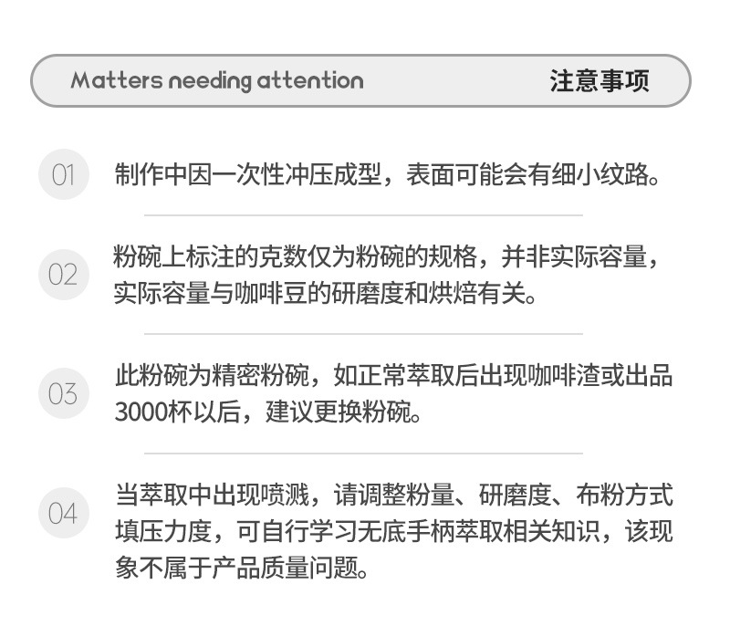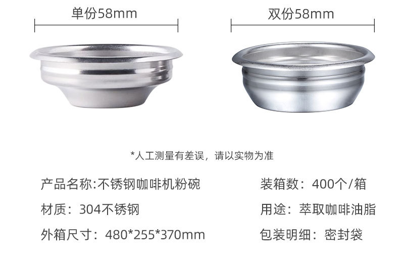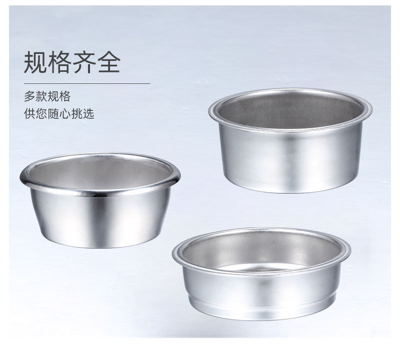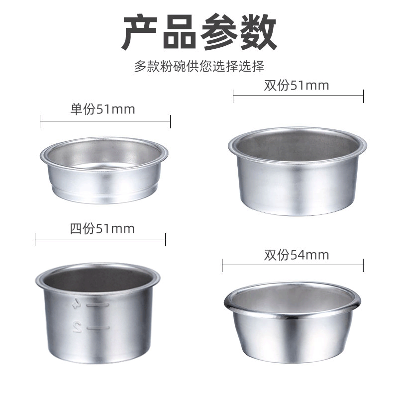 | Especificaciones | Tazón ciego de limpieza de 51mm,Tazón ciego de limpieza de 54mm,Tazón de fuente ciega de limpieza de 58mm,51mm de copia única,51mm Doble,51mm cuatro copias,Porción doble de 54 mm.,Copia única de 58mm,58mm Doble,Modelo vertical de 58 mmIMS,Modelo sobrealimentado de una sola porción de 51 mm (un solo orificio),Versión doble sobrealimentada de 51 mm (un solo orificio),58 mm de porción única recta - altura 22 (648 agujeros),58 mm recto - altura 24 (648 agujeros),Cuerpo recto de 58 mm - altura 26 (936 agujeros),58 mm recto - altura 28 (648 agujeros) |