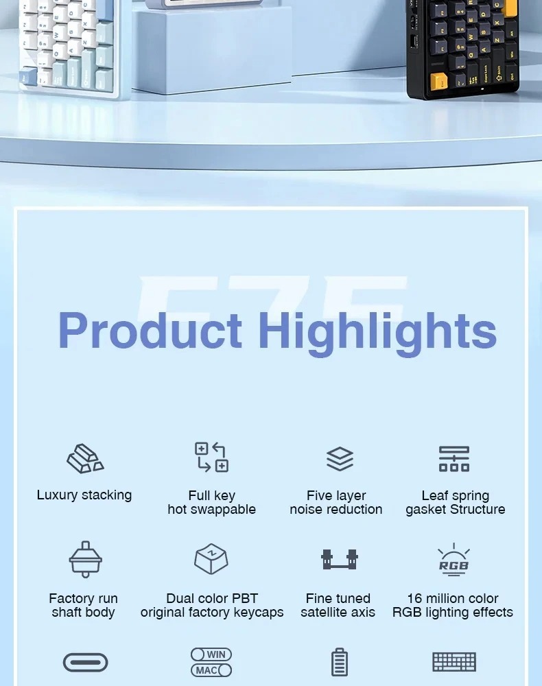 | Colores | F75 Glacier Blue-Reaper Eje,F75 Cedro Verde-Eje Reaper,F75 sal marina azul-eje de luna nueva,Eje F75 Thunder Black-Reaper,F75 Sea Reef Black-Reaper Eje,F75 Cloud Blue-Reaper Eje,F75 Feixia Powder-Reaper Eje,F75 línea de contorno negra-eje de Seiya,F75 línea de contorno blanca-eje de Seiya,F75max Glacier Blue-Eje del segador,F75max Arrecife Negro-Reaper Eje,F75max estrella caída nube-eje del segador,F65 Yellow Oriole Eje verde oscuro-Wind Spirit,F65 Amanecer-Eje volcánico,F65 jazmín fragante azul-eje volcánico,Eje de corte de contorno gris degradado F75max |