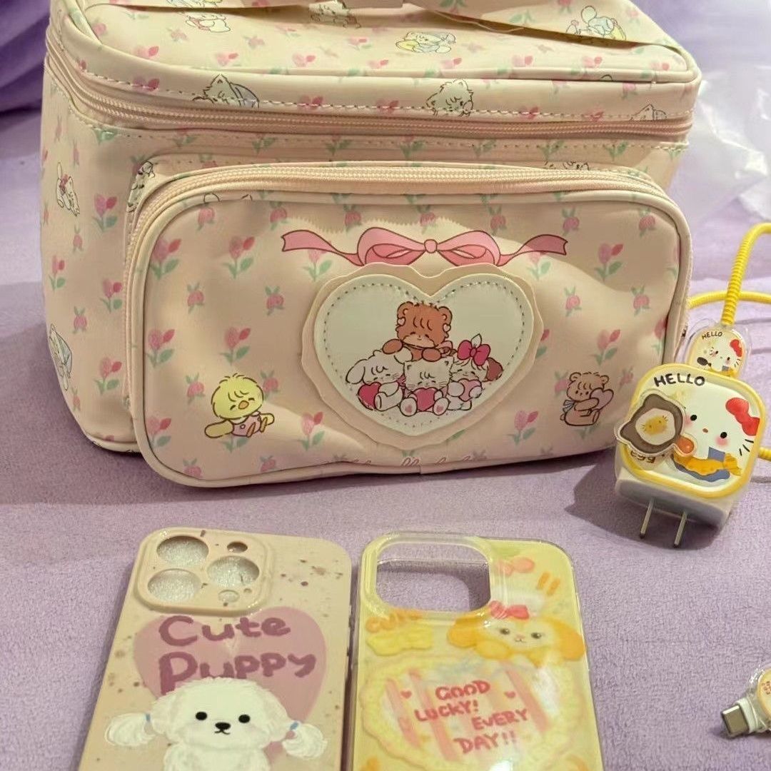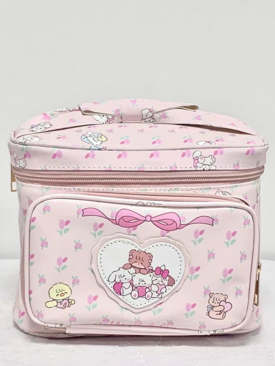 Bolsa de maquillaje PU gran capacidad | Neceser portátil con diseño animado