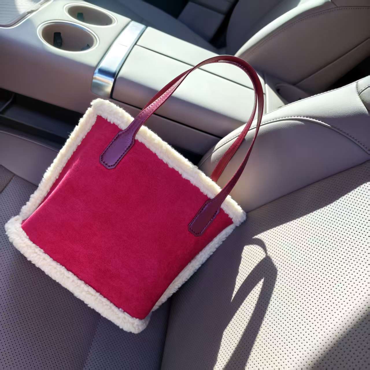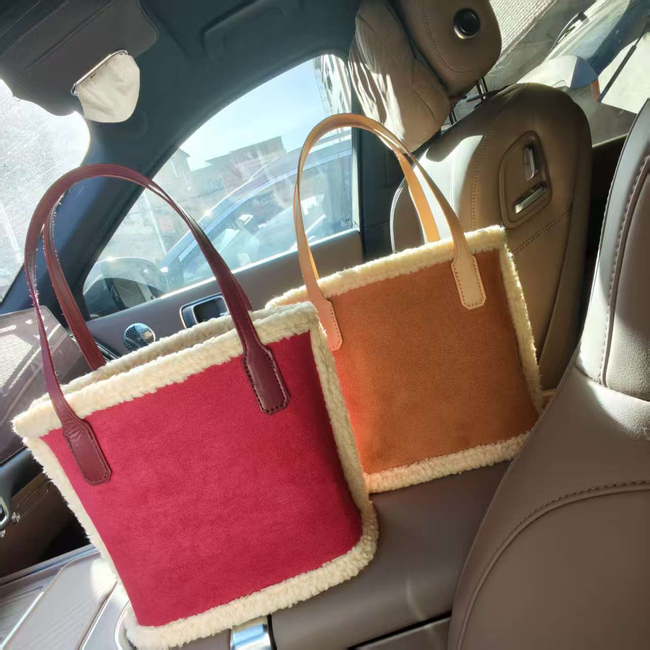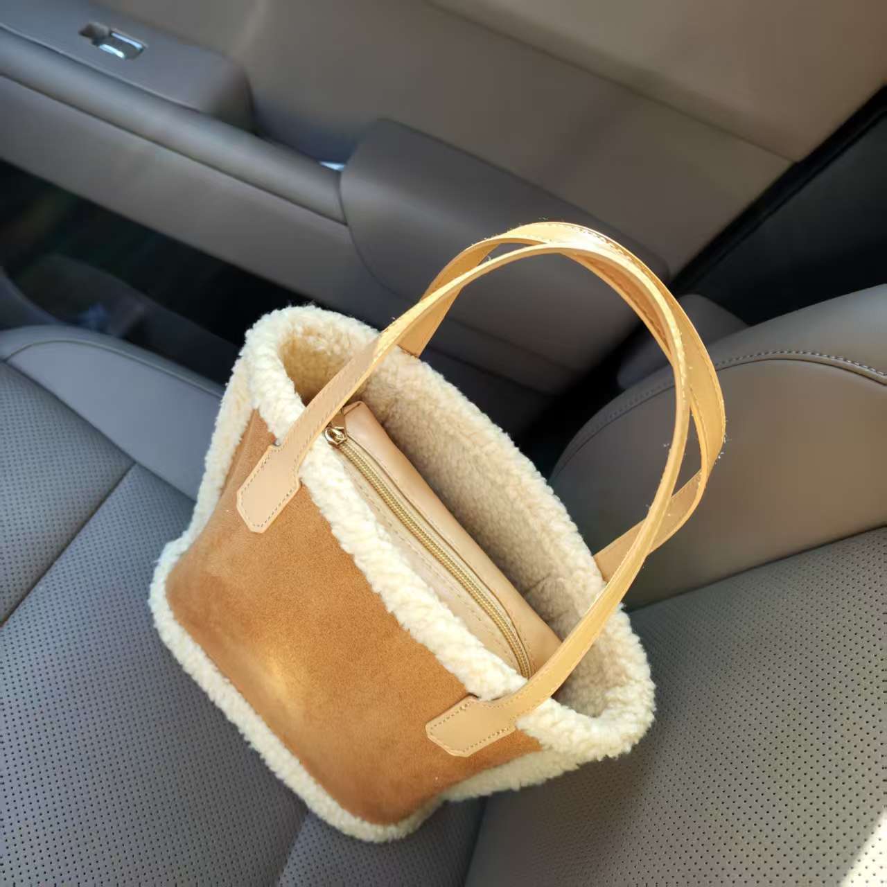 Bolso de felpa de gran capacidad estilo otoño/invierno, bolso de gamuza tipo cubo para madre e hija