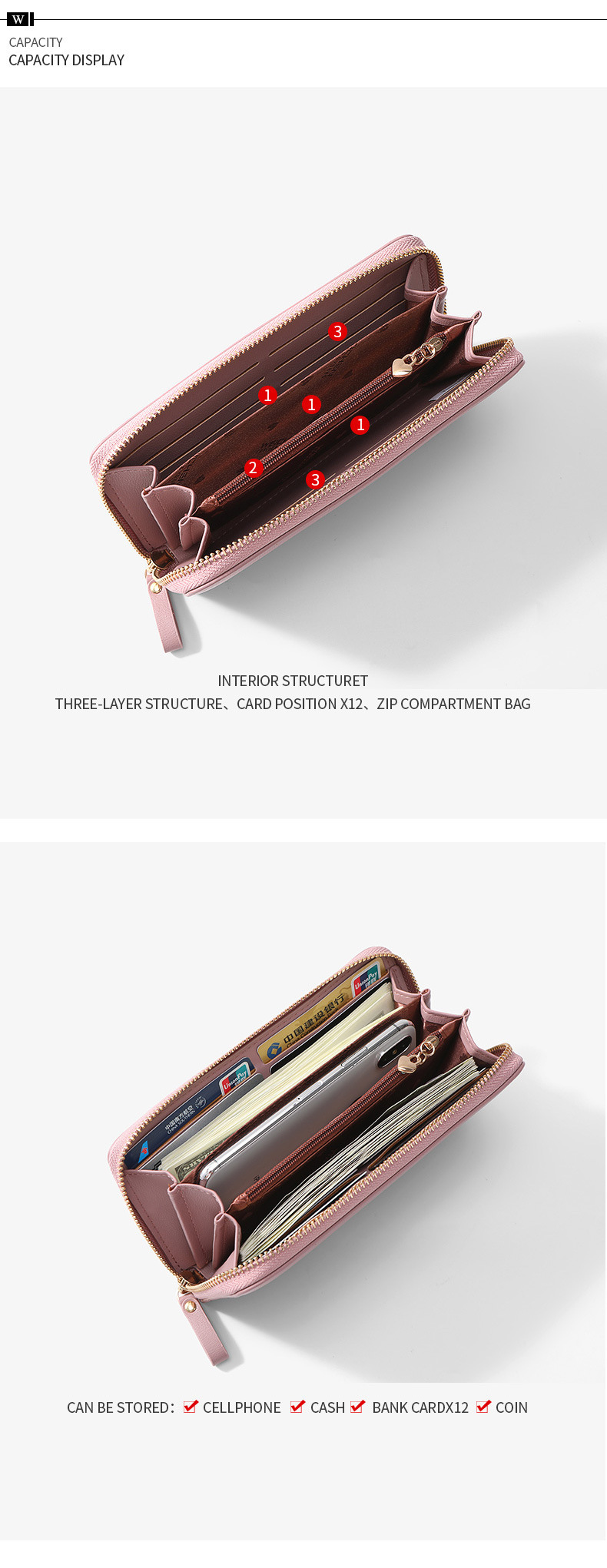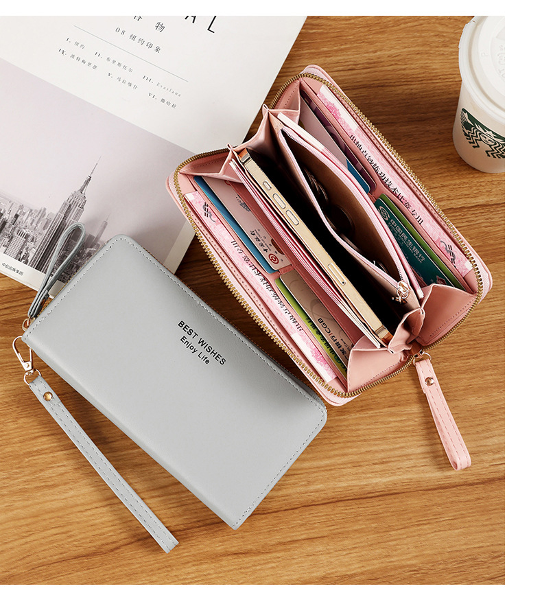 Comercio exterior transfronterizo billetera larga para mujer bolso multifuncional para teléfono móvil PU moda de alta gama sentido monedero para mujer