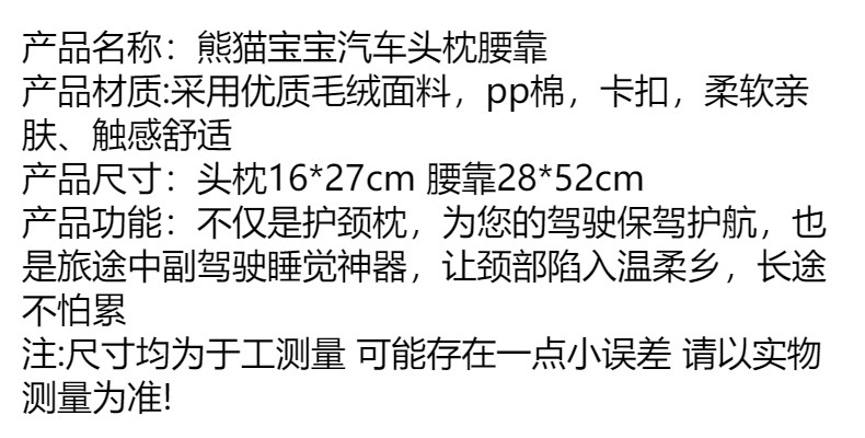 | Color | Bebé Panda-solo reposacabezas,Bebé Panda-soporte de la cintura sola |