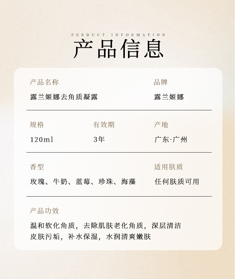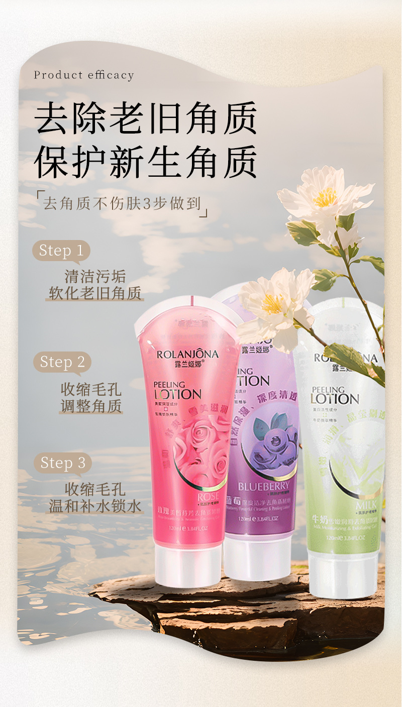 | Especificaciones del producto | Gel exfoliante de algas 120ml,Gel exfoliante perla 120ml,Gel exfoliante leche 120ml,Gel Exfoliante Rosa 120ml,Gel exfoliante de arándanos 120ml |