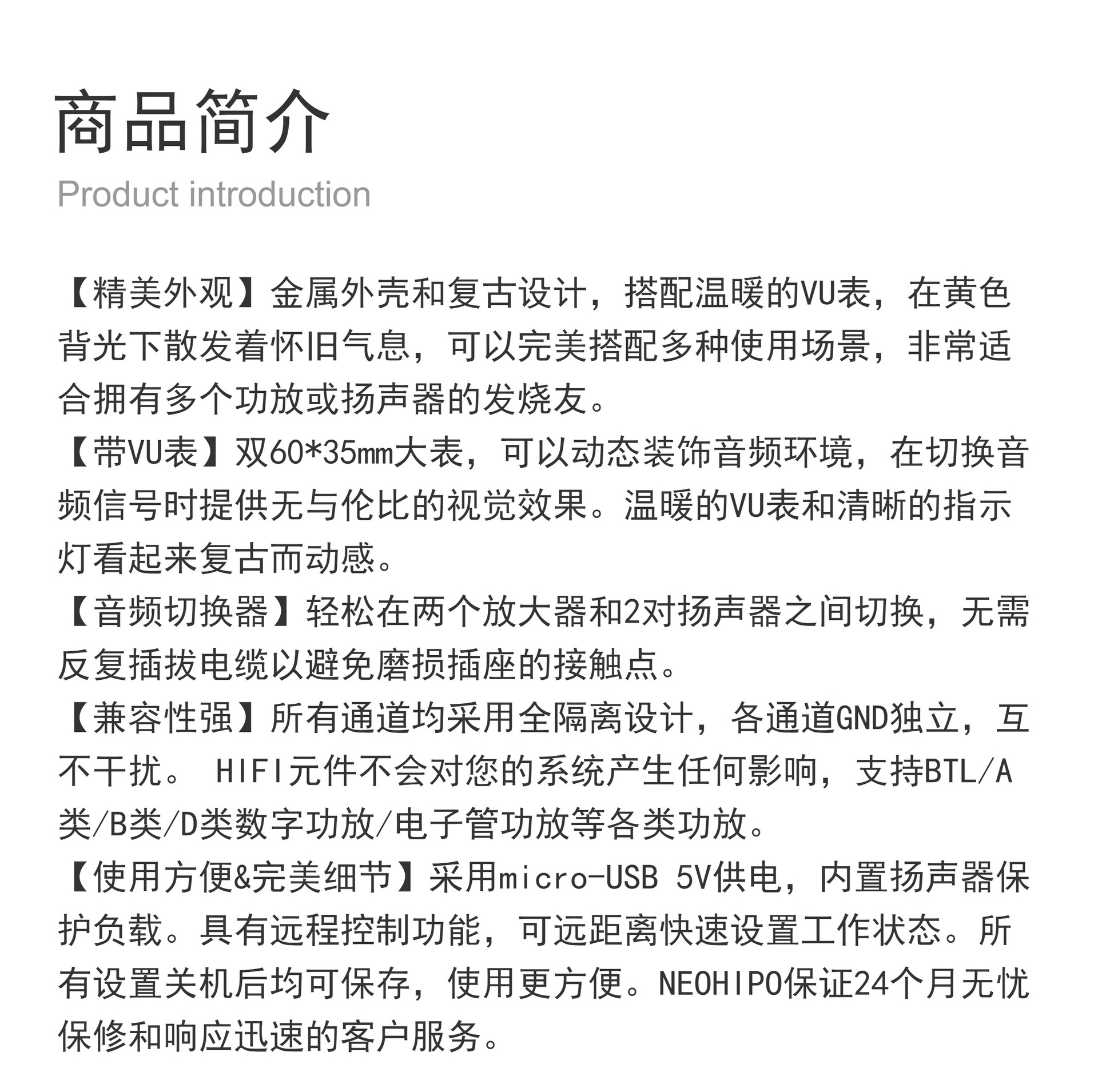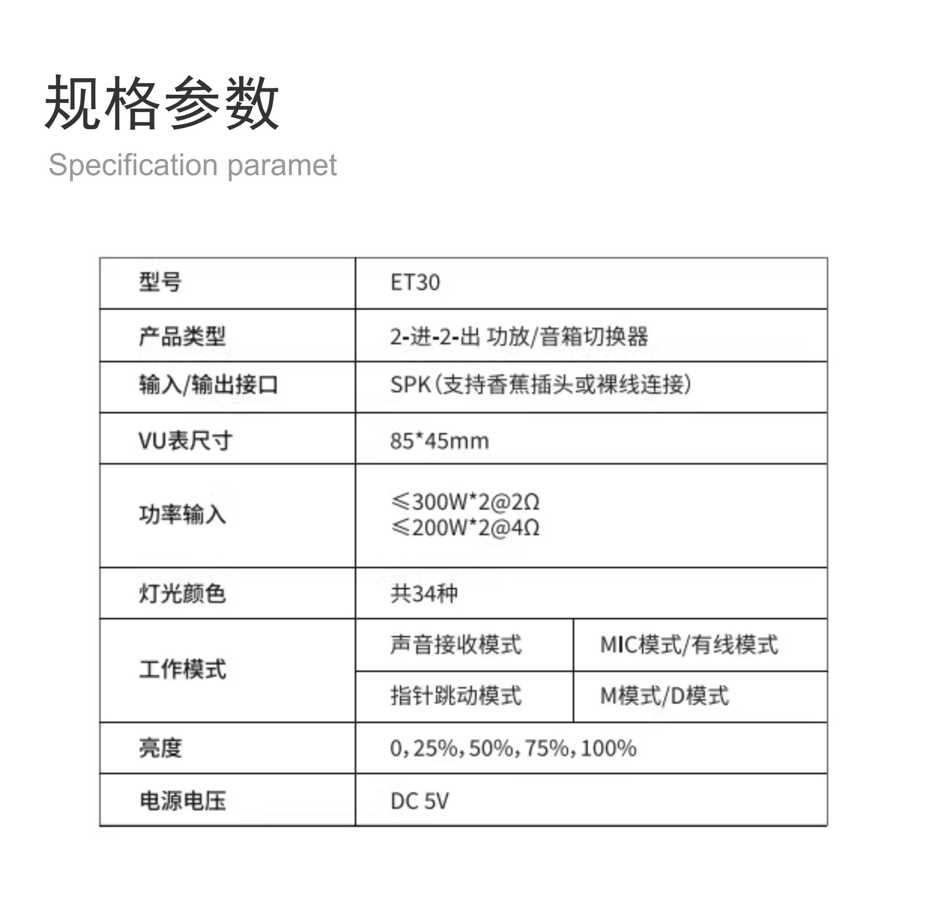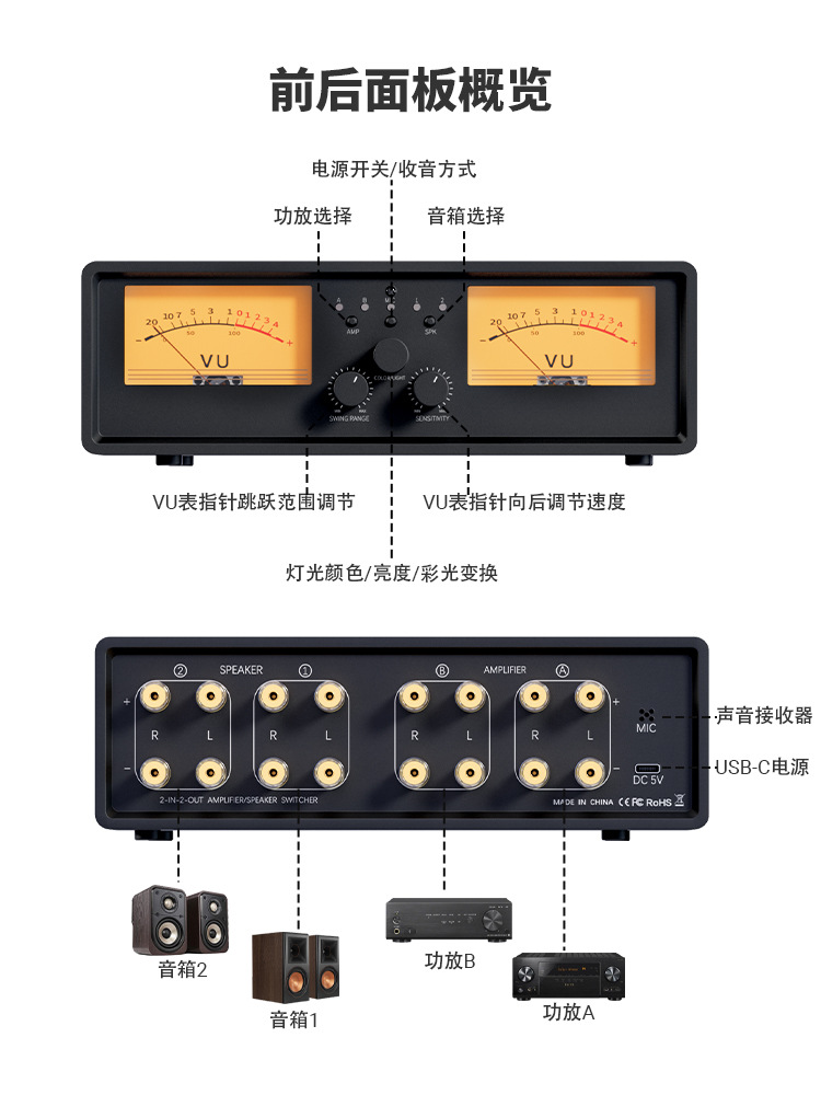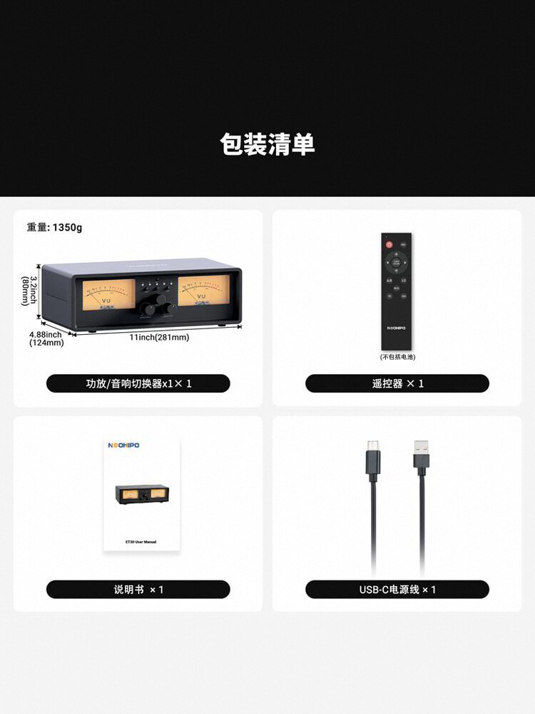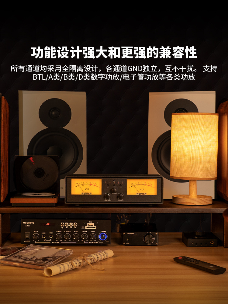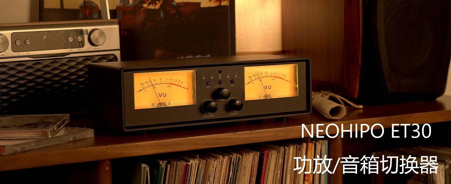 NEOHIPO ET30 amplificador de potencia de dos entradas y dos salidas altavoz seleccione interruptor de aleación de aluminio retro doble VU mesa luz de atmósfera