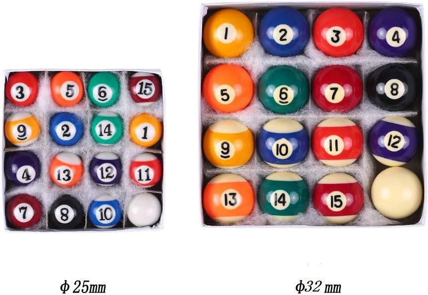 迷你台球:我们的美国台球体积小,重量轻,0.98 / 1.25 英寸(约 0.98 / 3.2 厘米)可选。您可以根据您的台球桌尺寸选择尺寸。