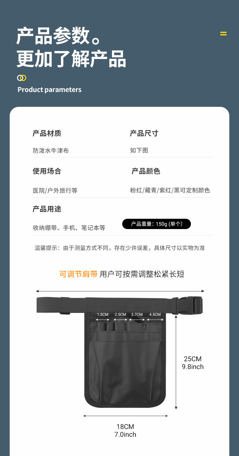 Bolsa de bolsillo de enfermera de punto transfronterizo Bolsa de almacenamiento de herramientas de enfermera