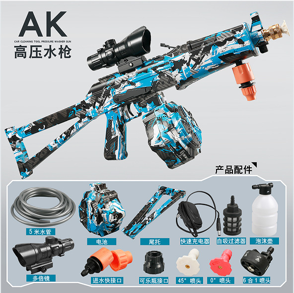 | Color | Pistola de agua de alta presión AK [rojo], pistola de agua de alta presión AK [azul], pistola de agua de alta presión mp5k [camuflaje 1 / soporte trasero plegable], pistola de agua de alta presión mp5k [camuflaje 2 / soporte trasero plegable], pistola de agua de alta presión de mochila, batería individual |