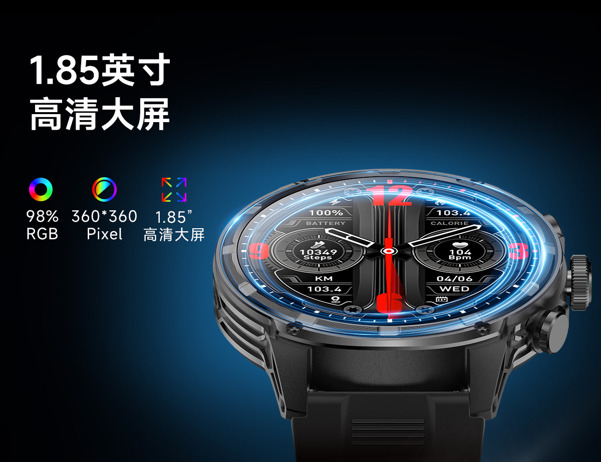 Display是否支持?(Support?)支持大小(Size)1.85寸像素(Resolution)360*360TP(special)触摸类型(Type)全屏触摸触摸屏材质(Meterial)钢化玻璃主要功能(Key features)通话(call)支持音乐功能(Music features)支持运动功能(Motor function)支持血氧(Blood oxygen)支持通话硬件(Calling hardware)喇叭( horn)防水喇叭麦克(Mike)防水麦克连接参数