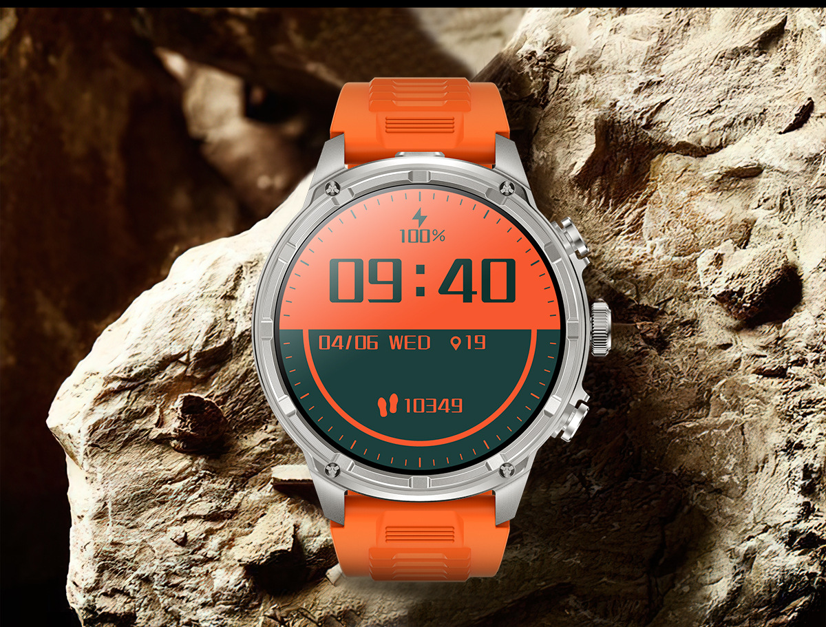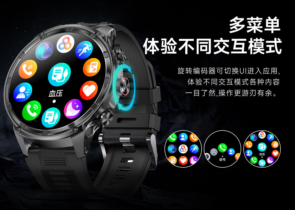 Basic Parameter外观尺寸(Outline)圆款手表直径54.0MM*厚13.0MM表面处理工艺(Craft)锌合金表壳喷砂加高光塑胶底盖表带材质(Strap material)硅胶表带 24mm宽手环重量(Weight)80克包装盒尺寸:(Pacjing Size)270mmX81mmX30mm包装箱规格&重量:(Box&Weight)93克智能手环一台,磁吸充电线,说明书一本颜色搭配(Color)枪色、钛色主要功能(Major function)一键蓝牙连接,来电提醒推送、短信提醒推送、微信提醒推送、QQ提醒推送、运动记录(计步、里程等)、轨迹地图,睡眠监测、久坐提醒、卡路里计算、秒表、低电量提醒、抬手亮屏、快速充电、超低功耗、心率、血压、震动、运动模式,远程拍照、音乐控制,智能闹铃、天气预报,高清大屏,多表盘切换,微信运动。通话芯片系统(System-on-a-chip)芯片(Chipset)瑞昱8763EWE、中科4代5681、选配:JL7012兼容系统(Compatible System)Android4.4,IOS9.0以上版本内存/运行内存(Memory/Running memory)RAM160KB外挂存储FLASH128Mb显示屏