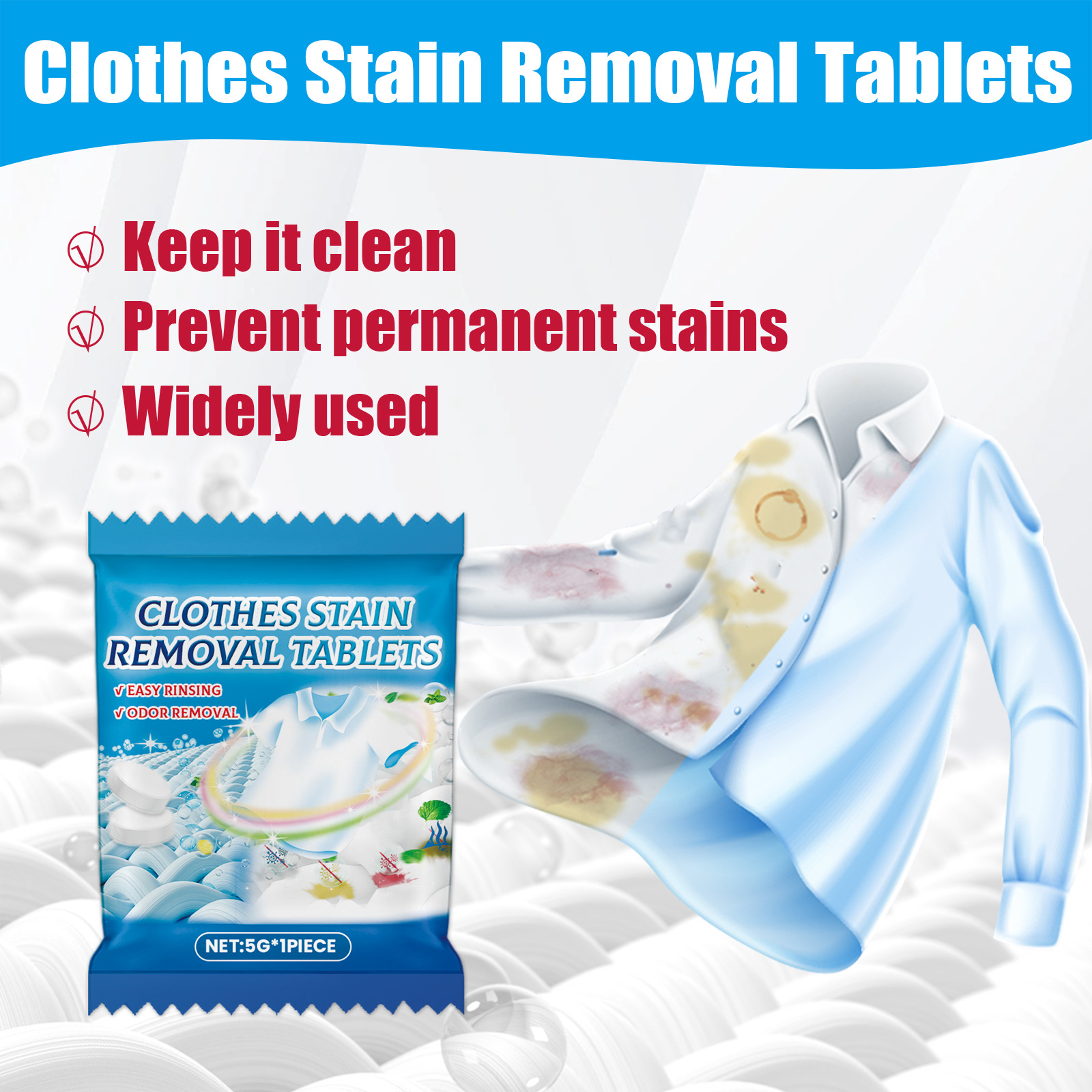 Jakehoe ropa efervescente de limpieza profunda ropa blanca manchas persistentes manchas de aceite perfumado duradero