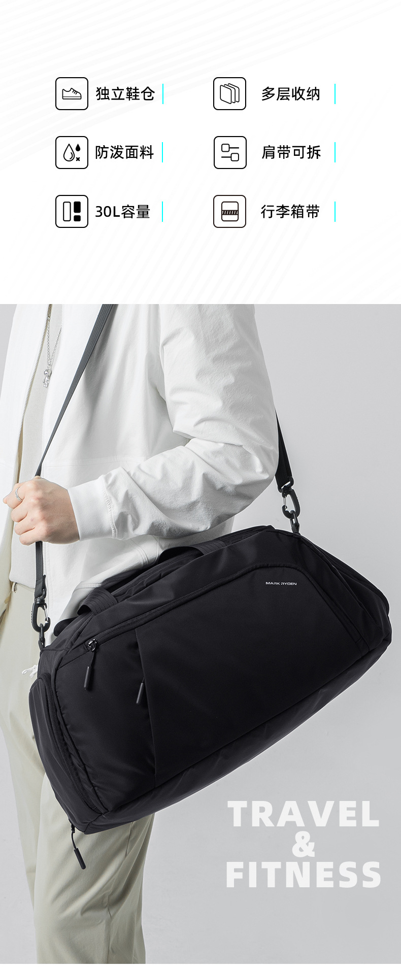 Bolsa de fitness, bolsa de ejercicio de separación seca y húmeda de gran capacidad, bolsa de viaje antisalpicaduras con logo y almacén de zapatos independiente