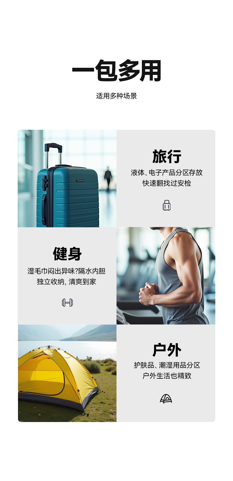 Mochila de viaje de negocios de gran capacidad, bolsa de fitness deportiva multifuncional, mochila portátil separada en seco y húmedo, un paquete para usos múltiples