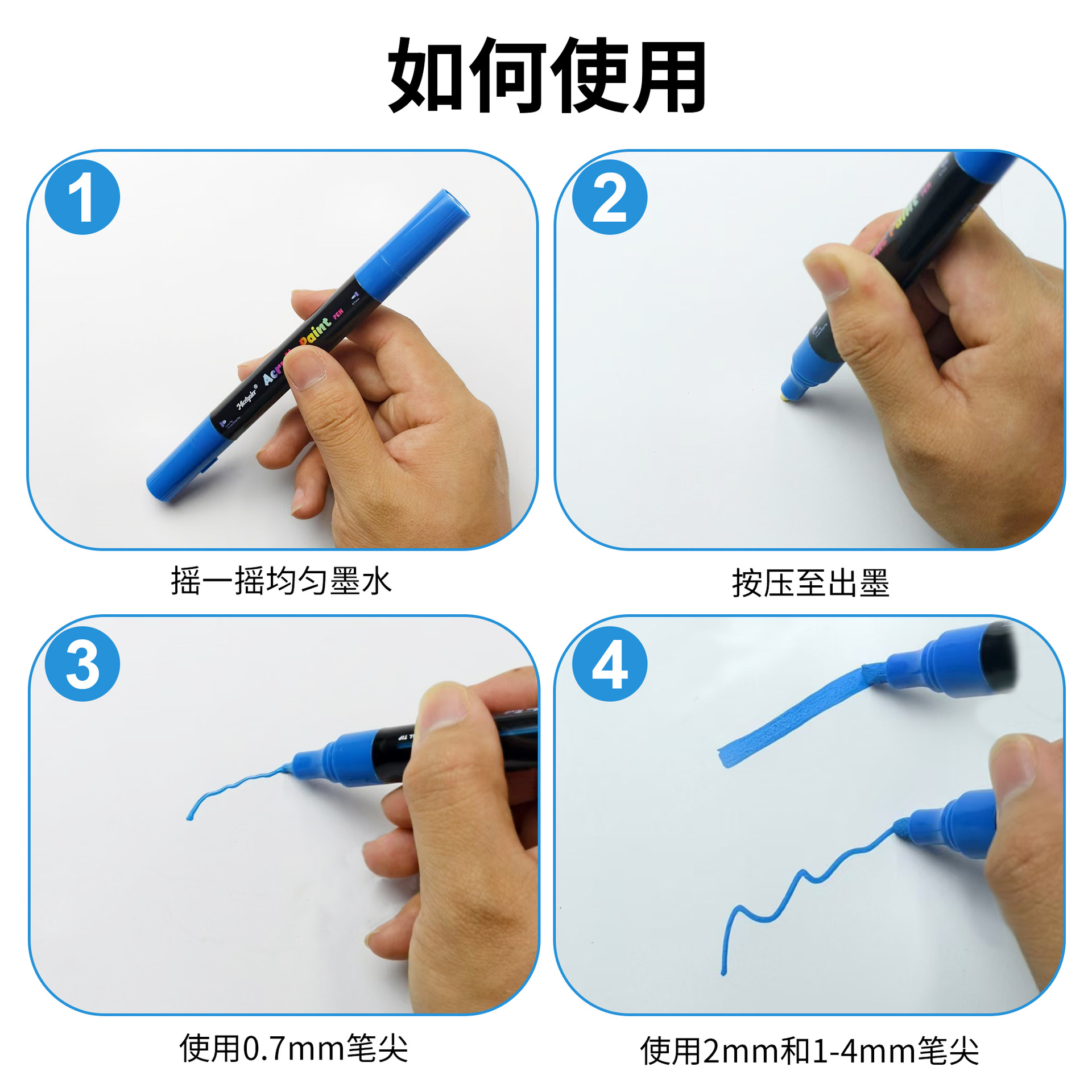 Set de rotuladores acrílicos de doble punta, base agua, punta fina y biselada, ideal para DIY, pintura y bocetos
