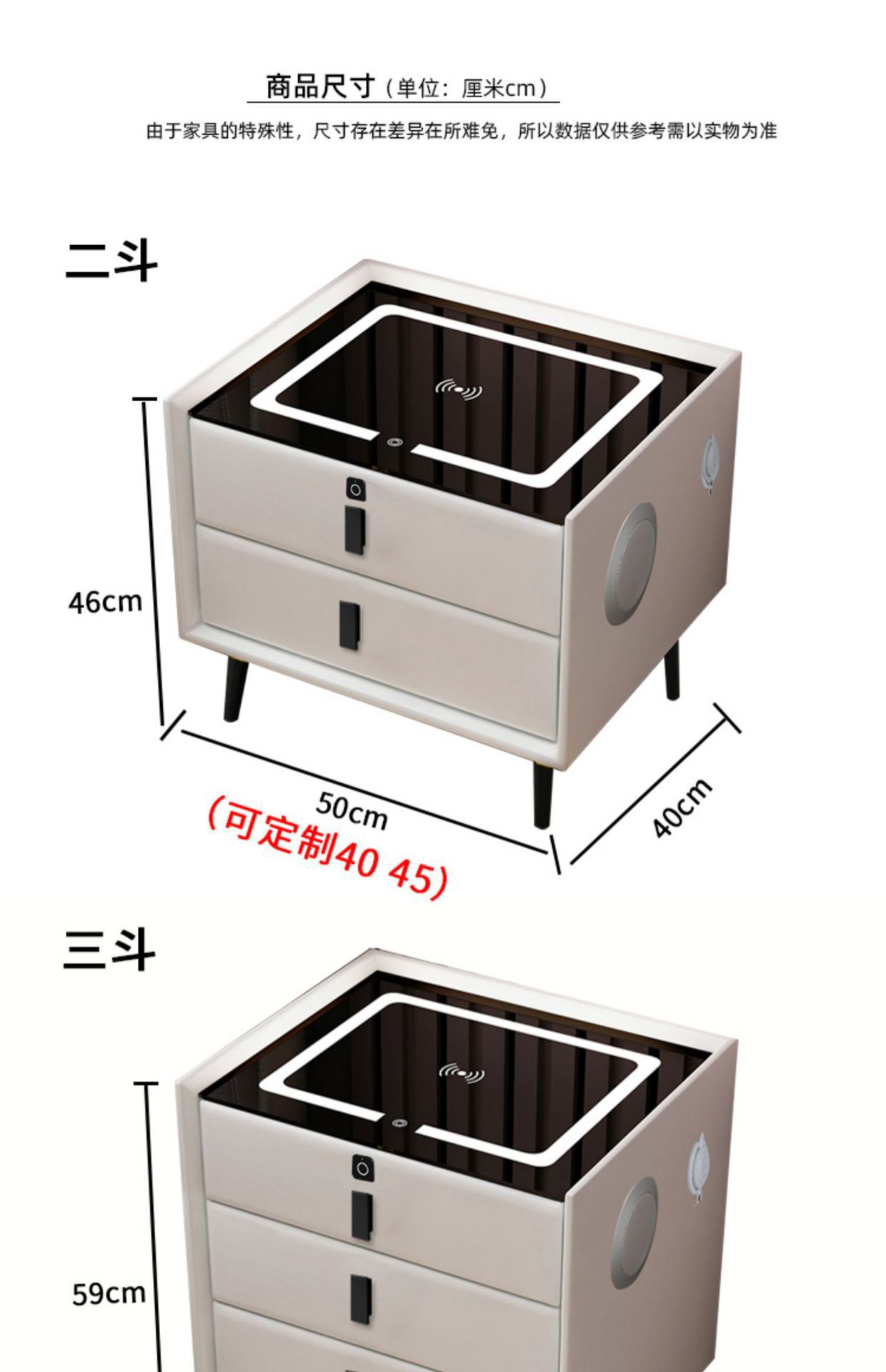 | Tamaño | 50*40*46 dos cajones,50*40*59 tres cajones |