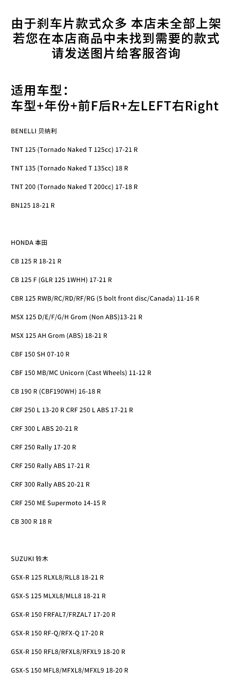 | Modelos aplicables | HONDA Honda CB125/SUZUKI Suzuki GSX-R125 |