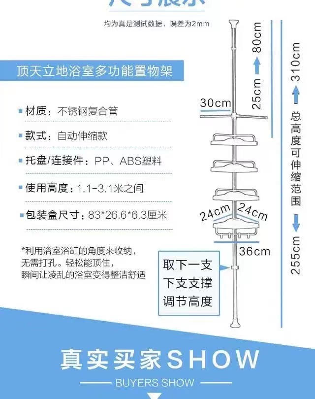 | Colores | ✷ ※[4 bandejas engrosadas ajustables] + toallero ✷ ※,✷※[4 bandejas engrosadas ajustables] + sin toallero✷※,✷※[5 bandejas engrosadas ajustables] + sin toallero✷※,✷※[5 bandejas ajustables] + sin toallero 1,1-3 m ajustable✷※,✷※[4 bandejas ajustables] + toallero 1,1-3m ajustable✷※,✷※Tres toalleros sin bandeja Neutral✷※,✷※[Tres capas] Cuadrado (estilo cocina)✷※ |