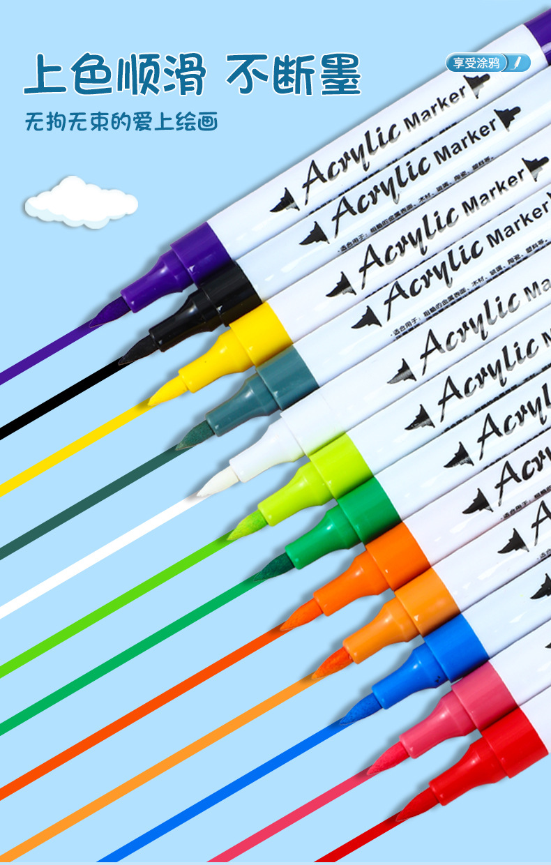 | 456 | Bolígrafo de marca acrílica juego de 12 colores bolígrafo de pintura a base de agua DIY graffiti cerámico bolígrafo de Pintura acrílica precio excelente |