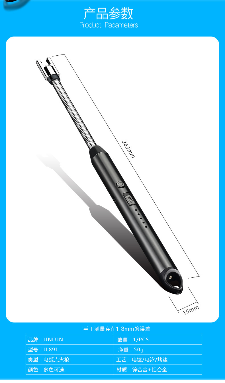 033点火枪 一箱是200个,单个的尺寸是长26.9X2 单个的重量是44.5克祼机,吸卡包装,外箱尺寸是:66X37X40.5CM,一箱的重量是18.5KG