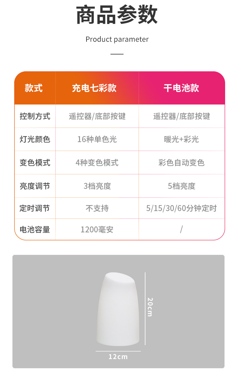 | Tamaño | D12 * H20cm/recargable/control remoto de luz de color,D12 * H20cm/batería/control remoto de luz de color cálido,Base de fuente de luz/estilo de carga/control remoto de luz de color 16,Base de fuente de luz/modelo de batería/control remoto de luz de color cálido |