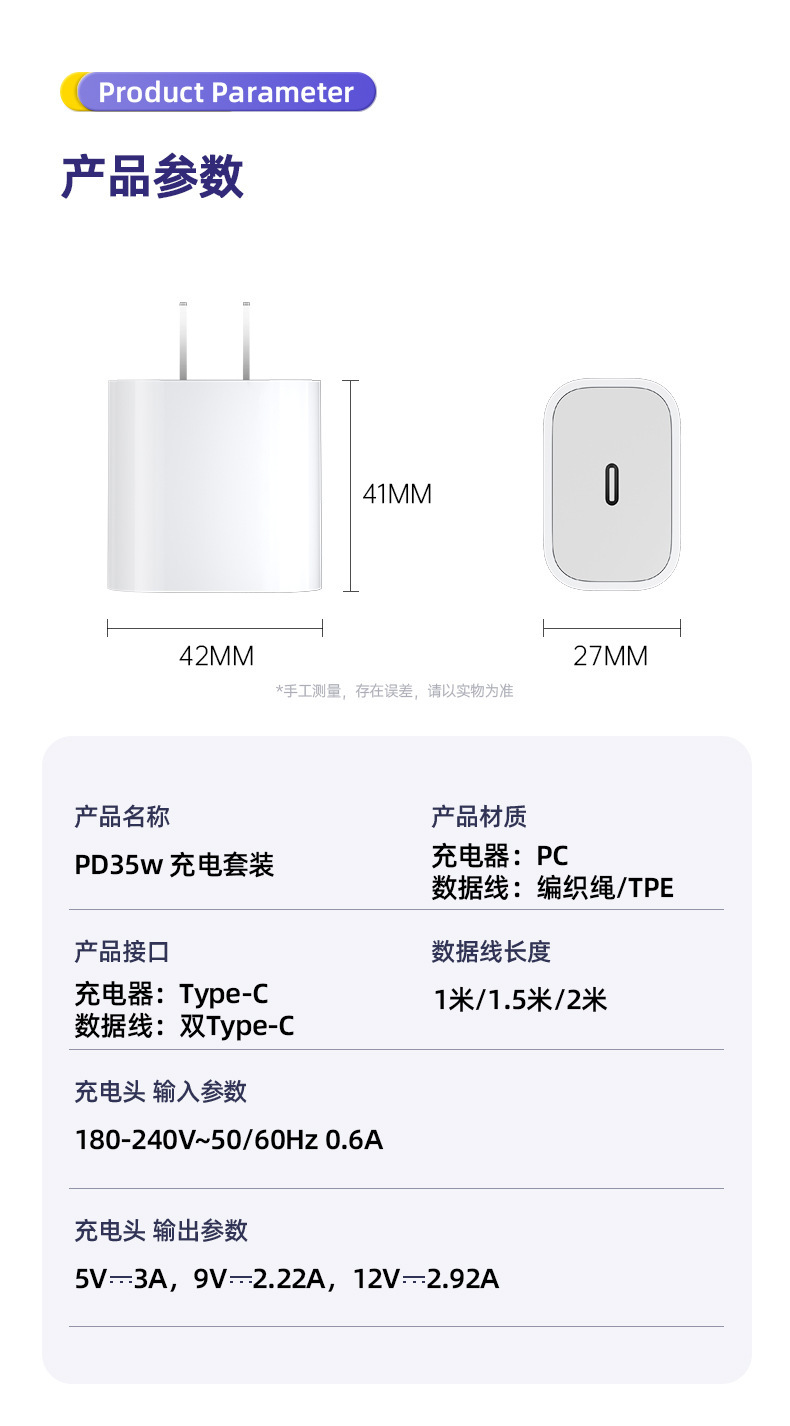 PD35W快充套装 适用苹果充电器原厂手机充电头3C认证苹果16快充头