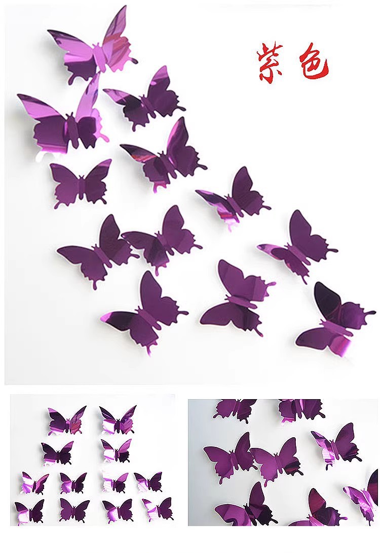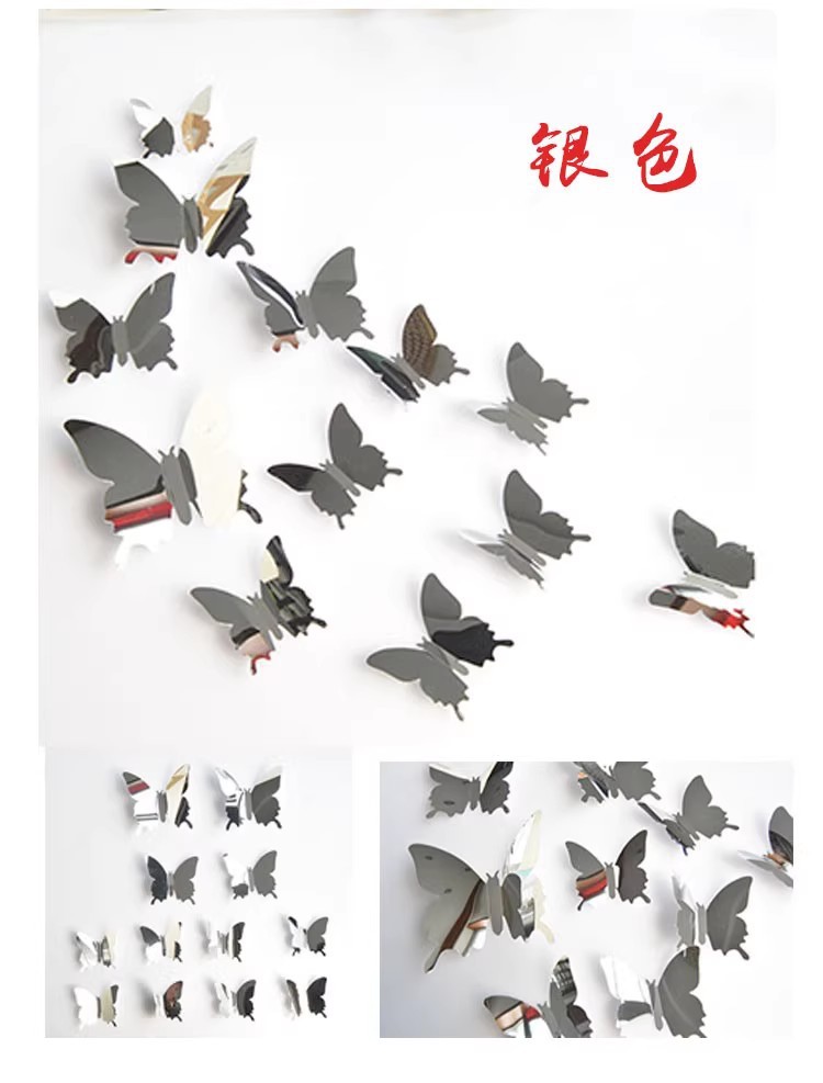 Transfronterizos 12 conjuntos de mariposas espejo PET 3D mariposas simulación boda festivales DIY pegatinas de pared decorativas