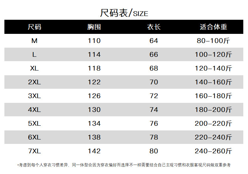 | Talla | M,L,XL,2XL,3XL,4XL,5XL,6XL,7XL |