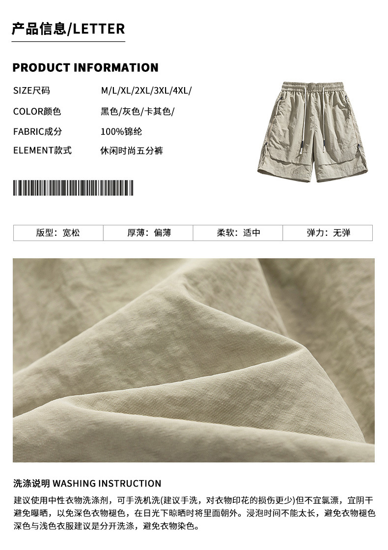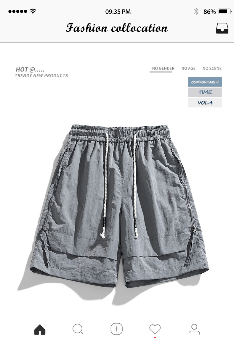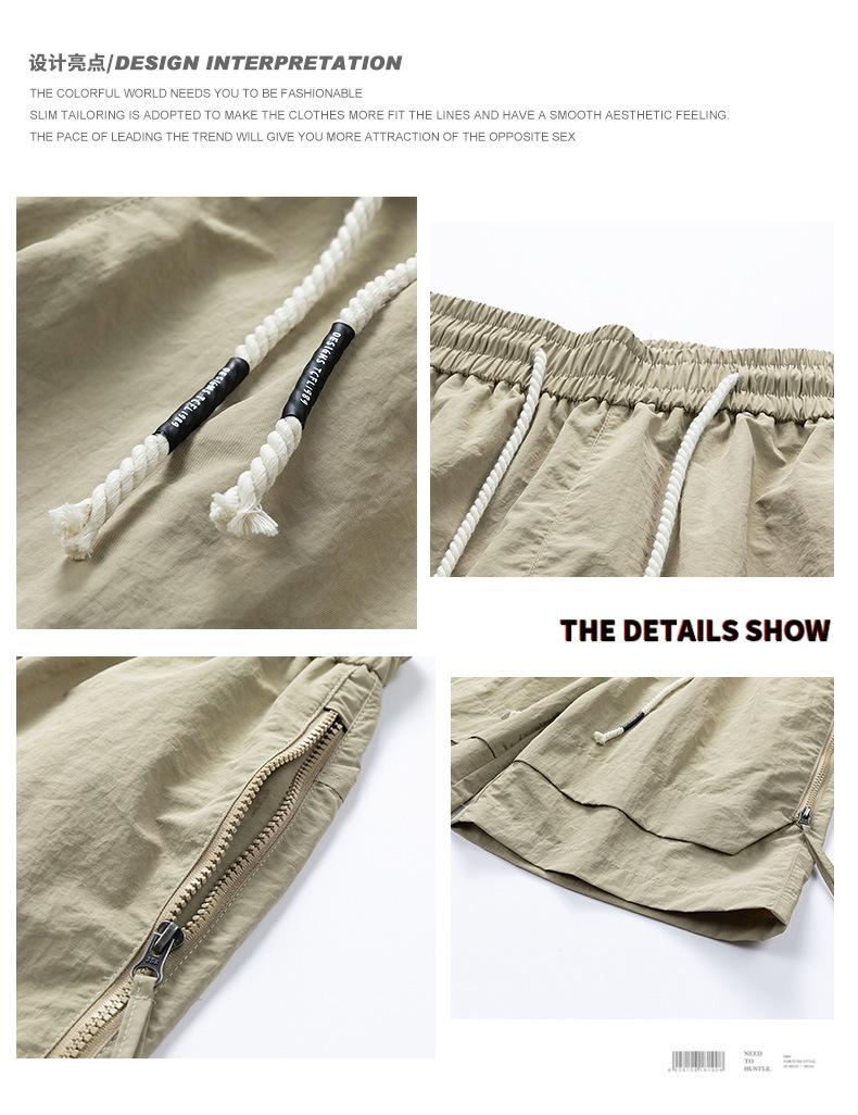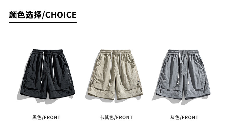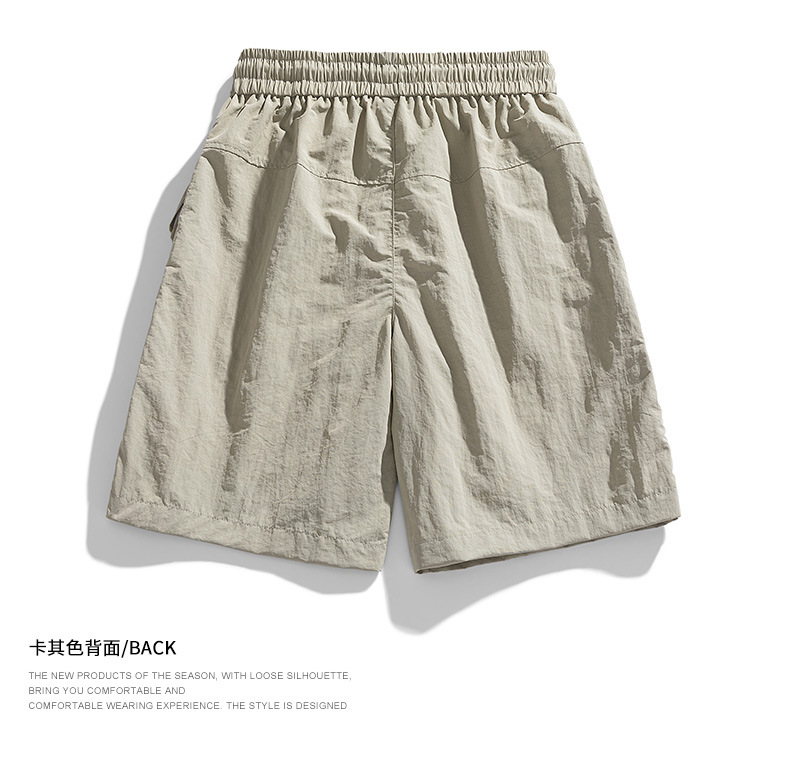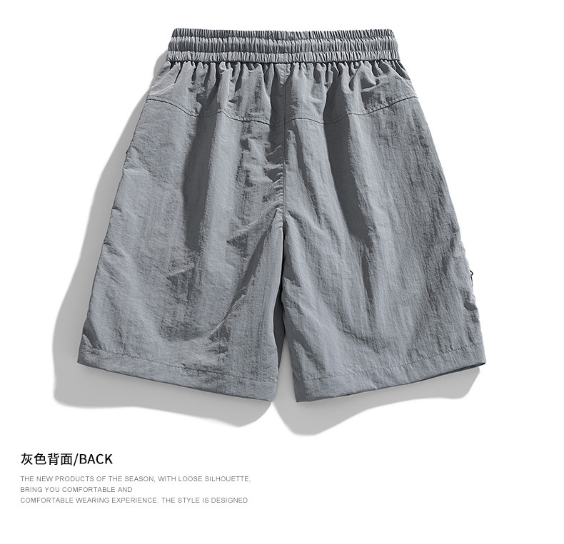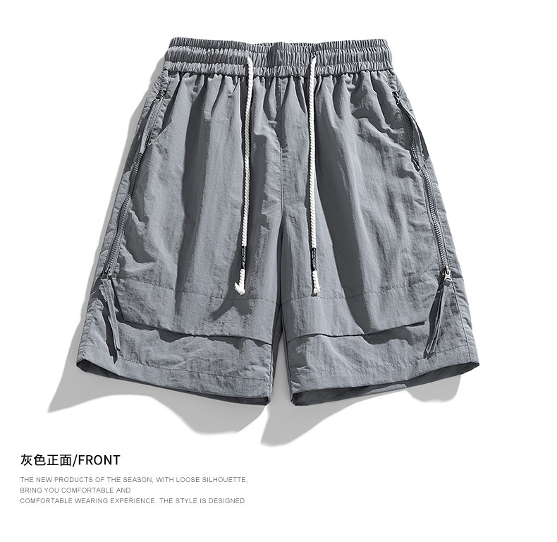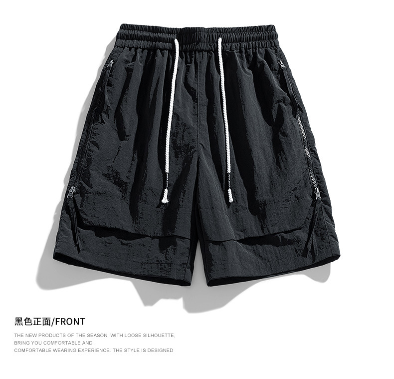 Pantalones de seda de hielo para hombres delgados de estilo casual rápido secado tendencia de bolsillo con cremallera suelta pantalones cortos deportivos de tamaño grande