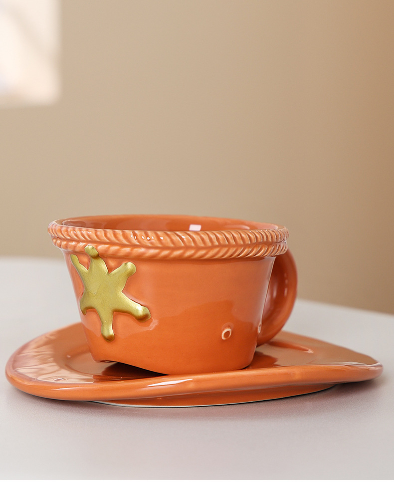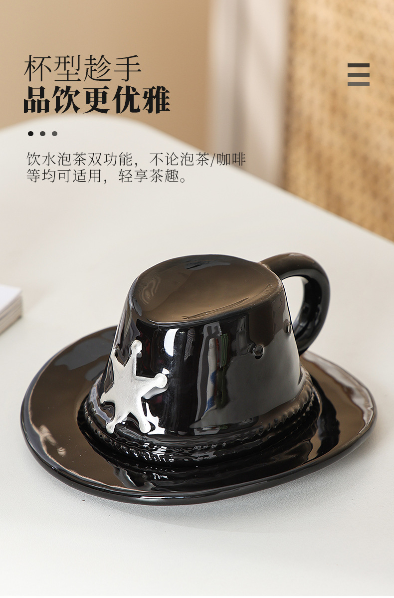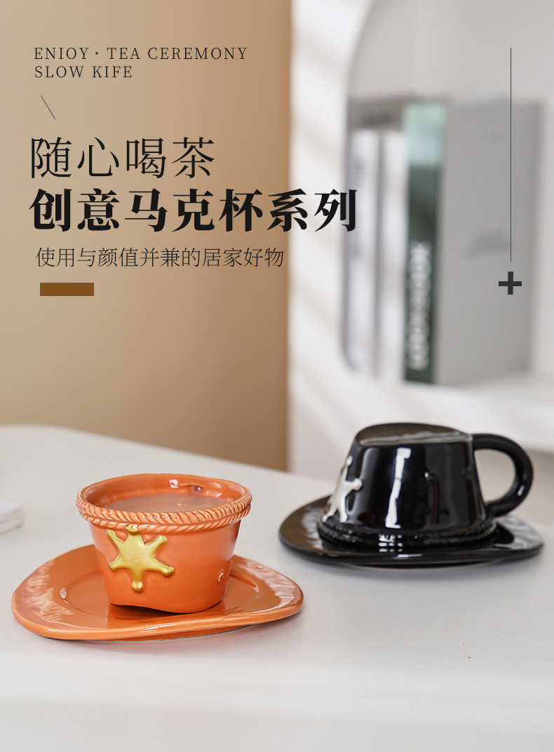 Creativo sombrero de vaquero taza de café taza de botón invertido taza de vaquero taza de cerámica doméstica de dibujos animados taza creativa de alto valor facial taza