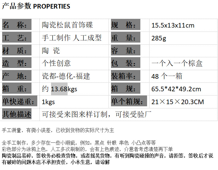 | Tamaño | Plato de joyería de ardilla cerámica |