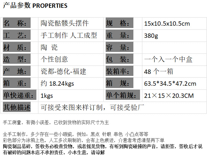 | Tamaño | Calavera de cerámica chapada en oro |