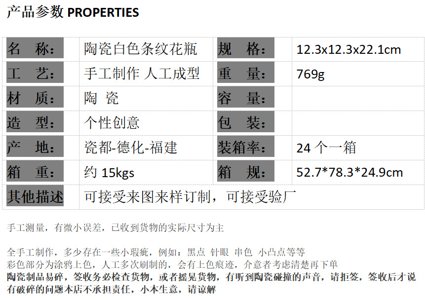 | Tamaño | Jarrón de rayas blancas cerámicas |