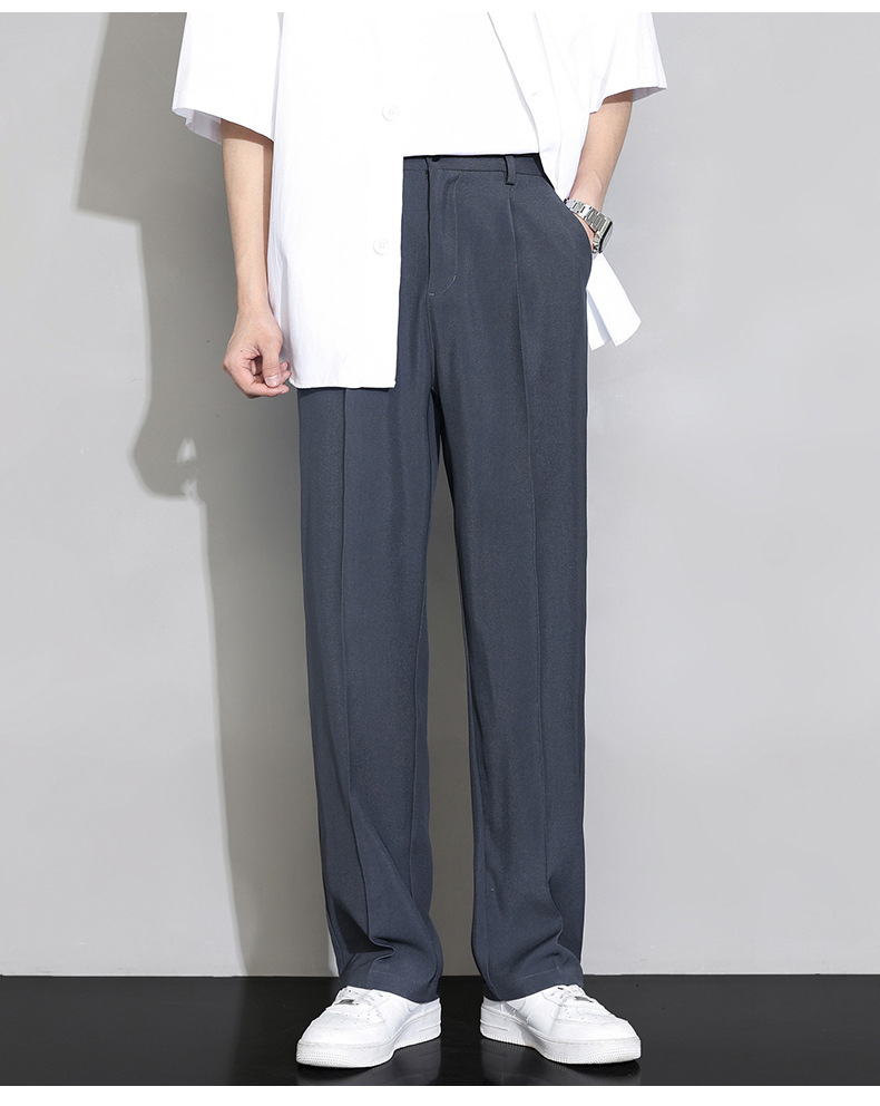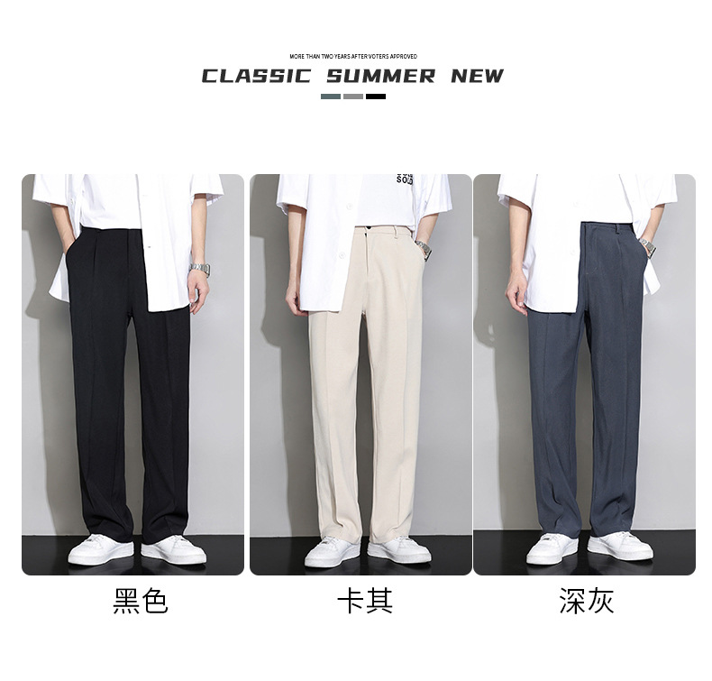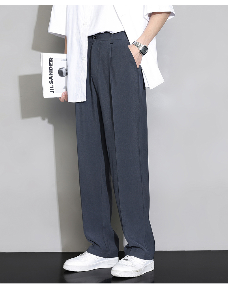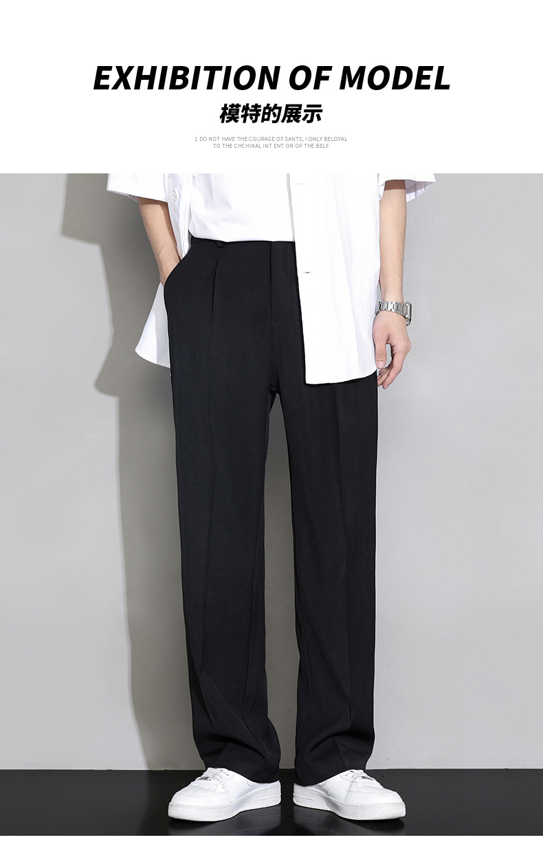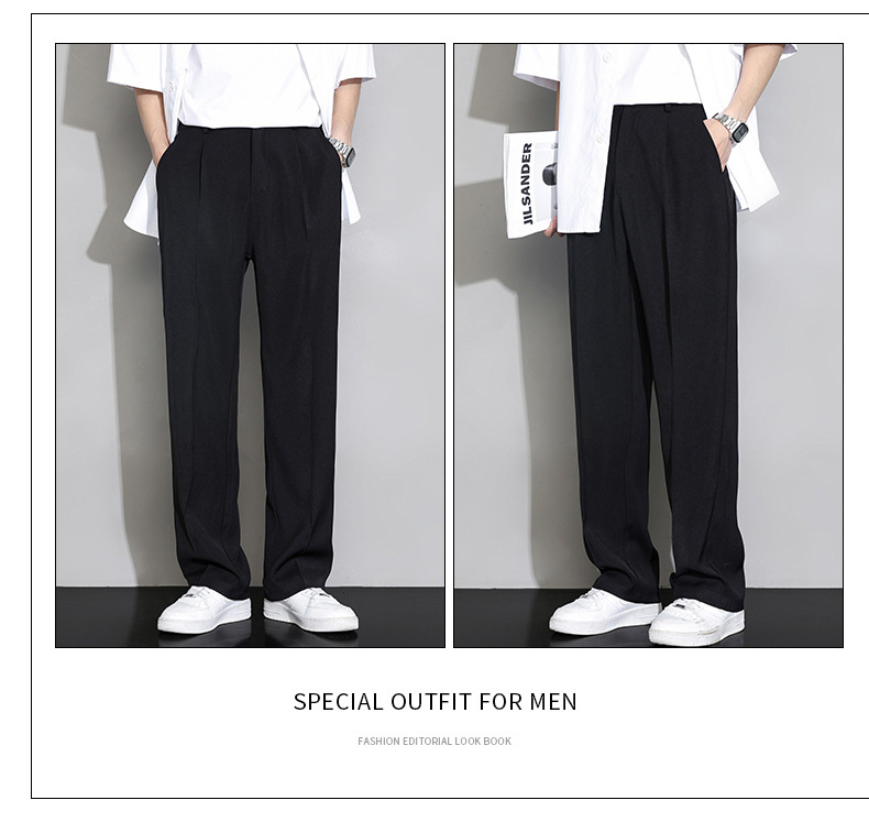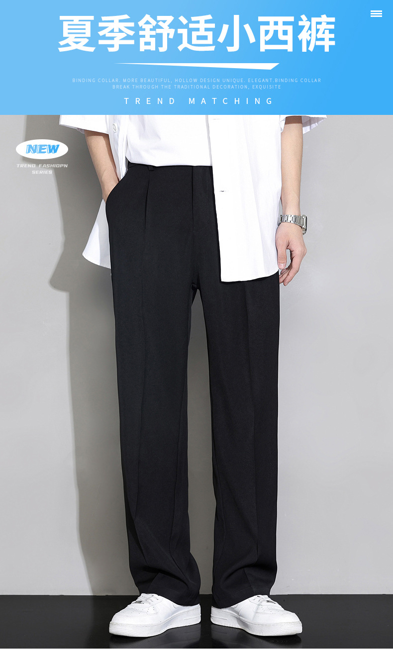Pantalones de hombre nueve puntos pantalones de verano relajados pantalones casuales rectos para hombre sensación de seda de hielo negro pantalones de traje