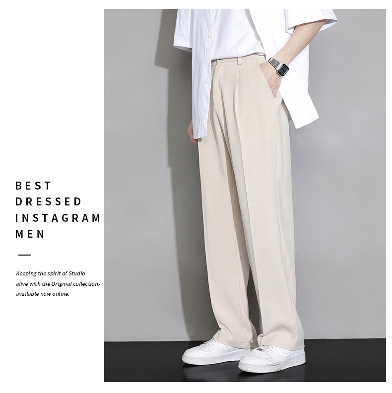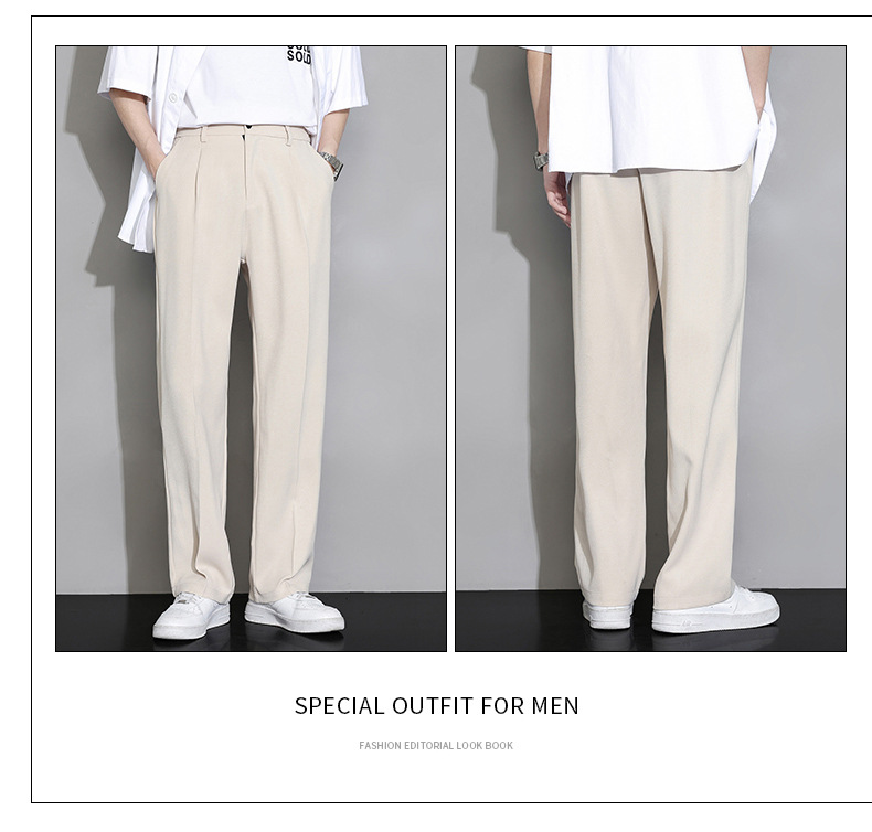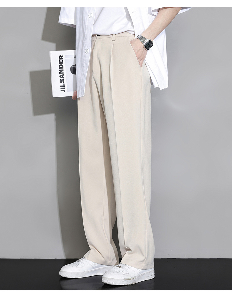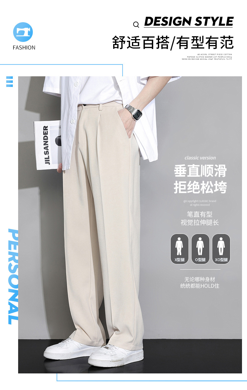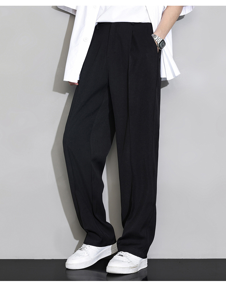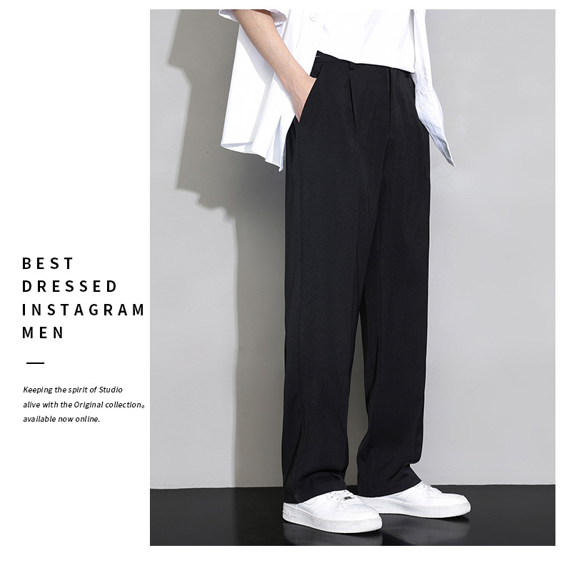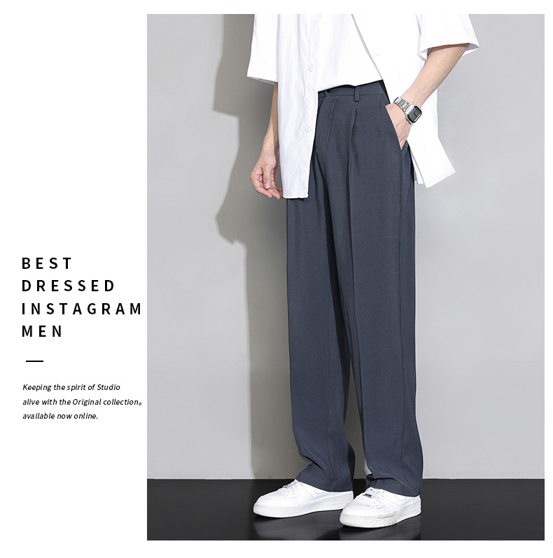 Pantalones de hombre nueve puntos pantalones de verano relajados pantalones casuales rectos para hombre sensación de seda de hielo negro pantalones de traje