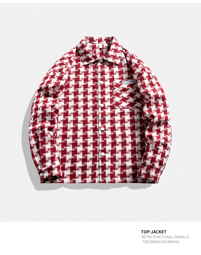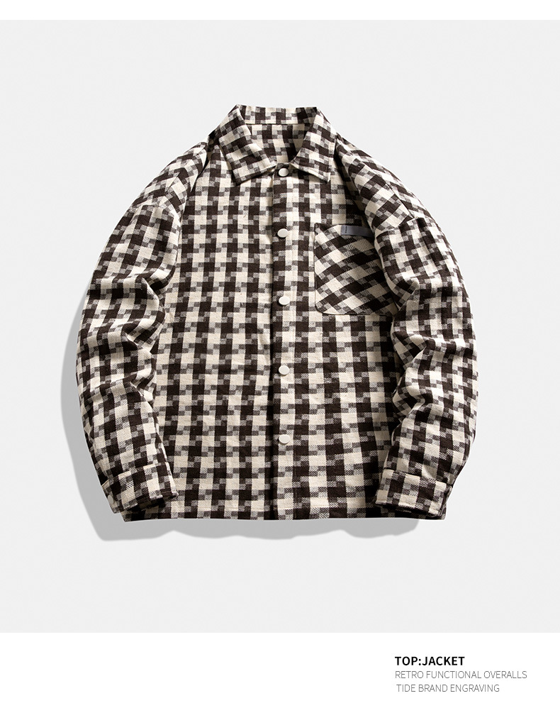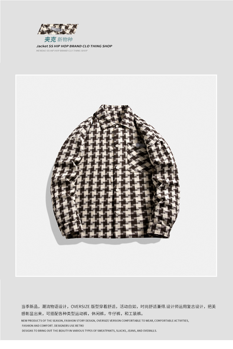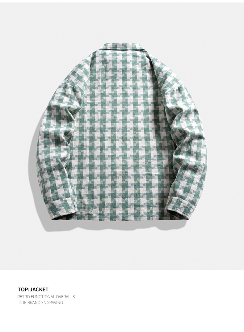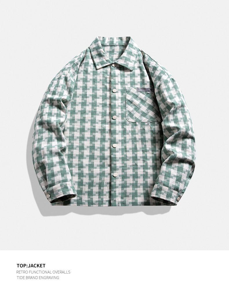 Hong Kong estilo retro camisa a cuadros chaqueta hombre primavera y otoño marca de moda alta sensación abrigo casual 23116