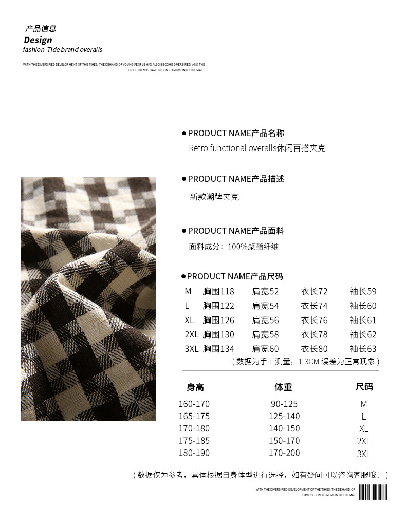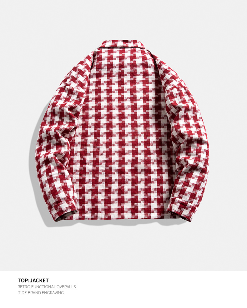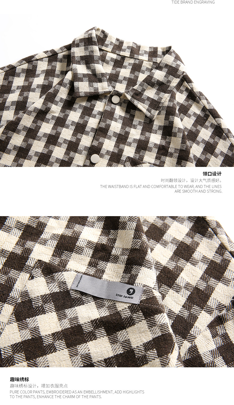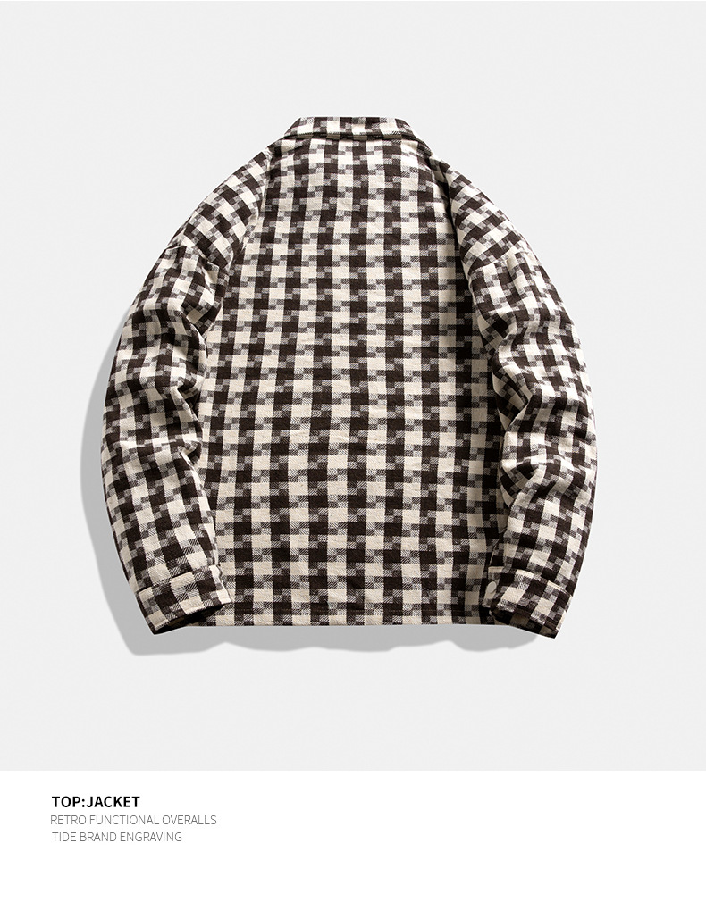 Hong Kong estilo retro camisa a cuadros chaqueta hombre primavera y otoño marca de moda alta sensación abrigo casual 23116