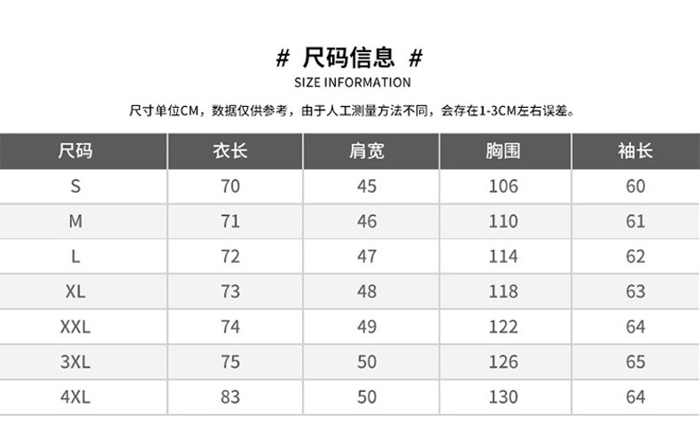 | Talla | S,M,L,XL,2XL,3XL,4XL |