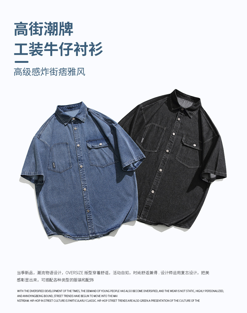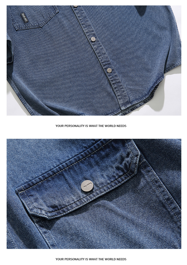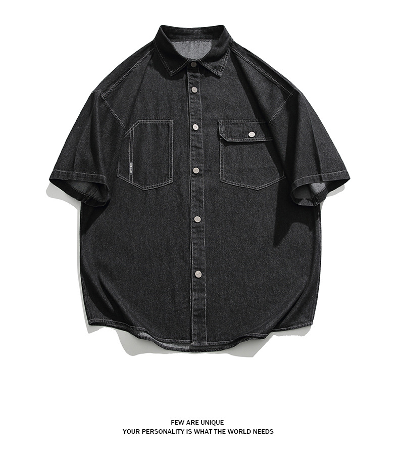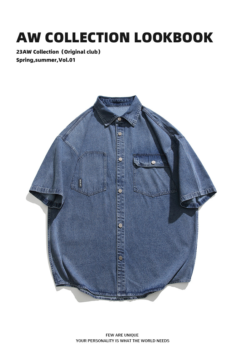 Camisas de vaqueros de manga corta para hombres de verano de moda americana de estilo de vestir suelto de estilo perezoso pareja de hombre chaqueta de media manga