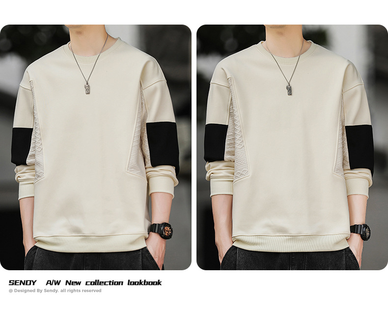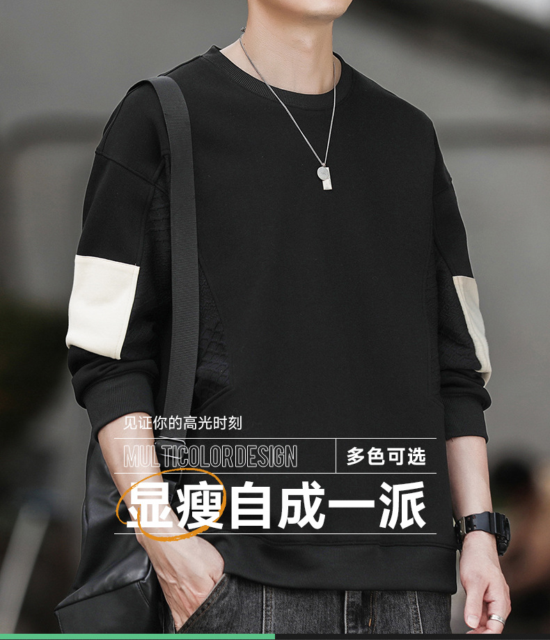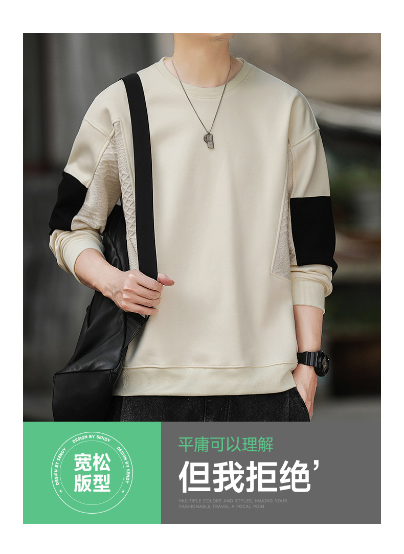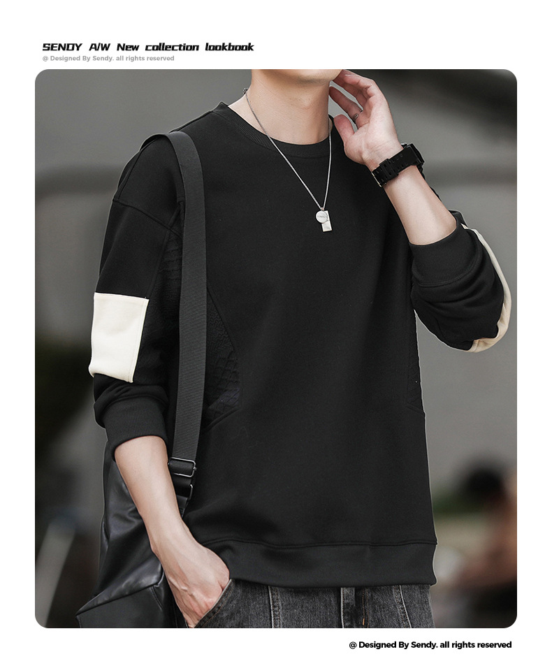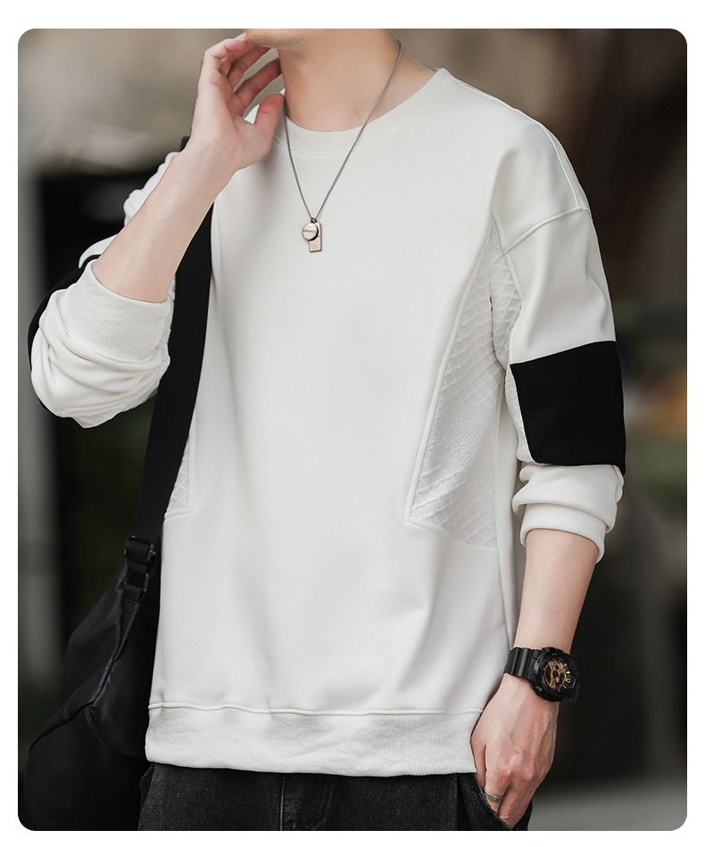 Hombre camiseta de cuello redondo camiseta de manga larga primavera y otoño nuevo suelto camiseta de fondo de tamaño grande Hong Kong marca de moda camiseta casual