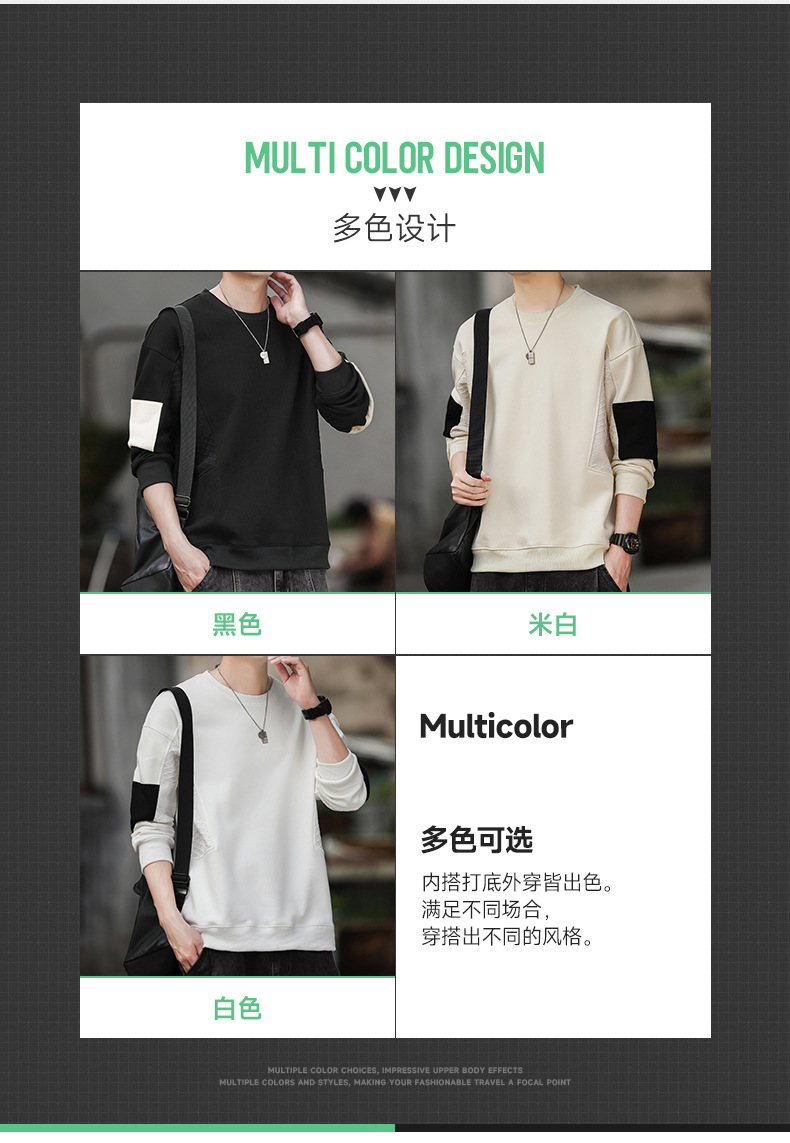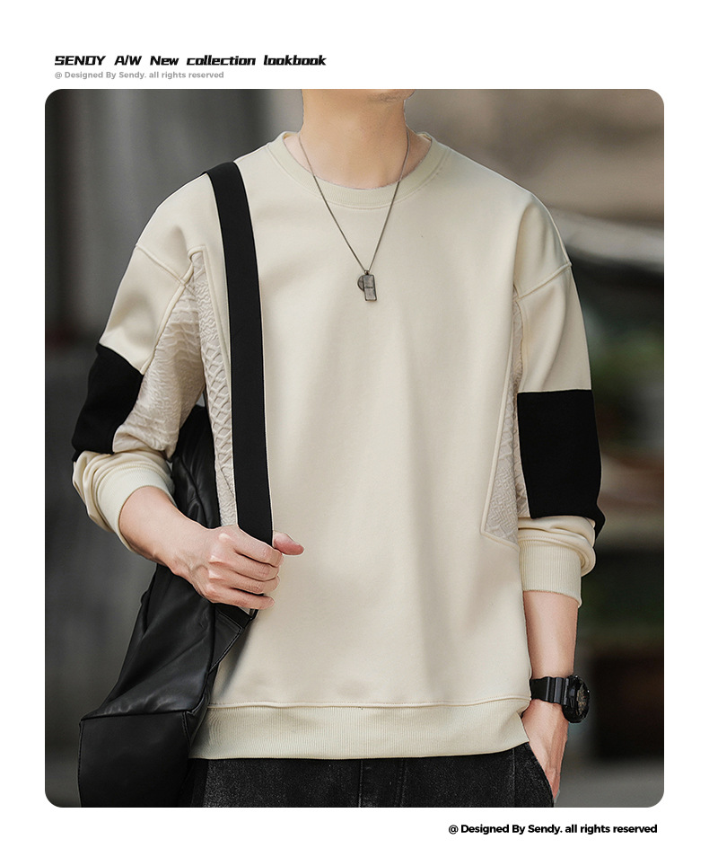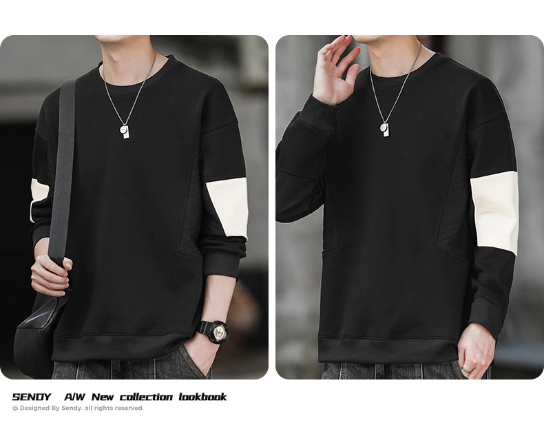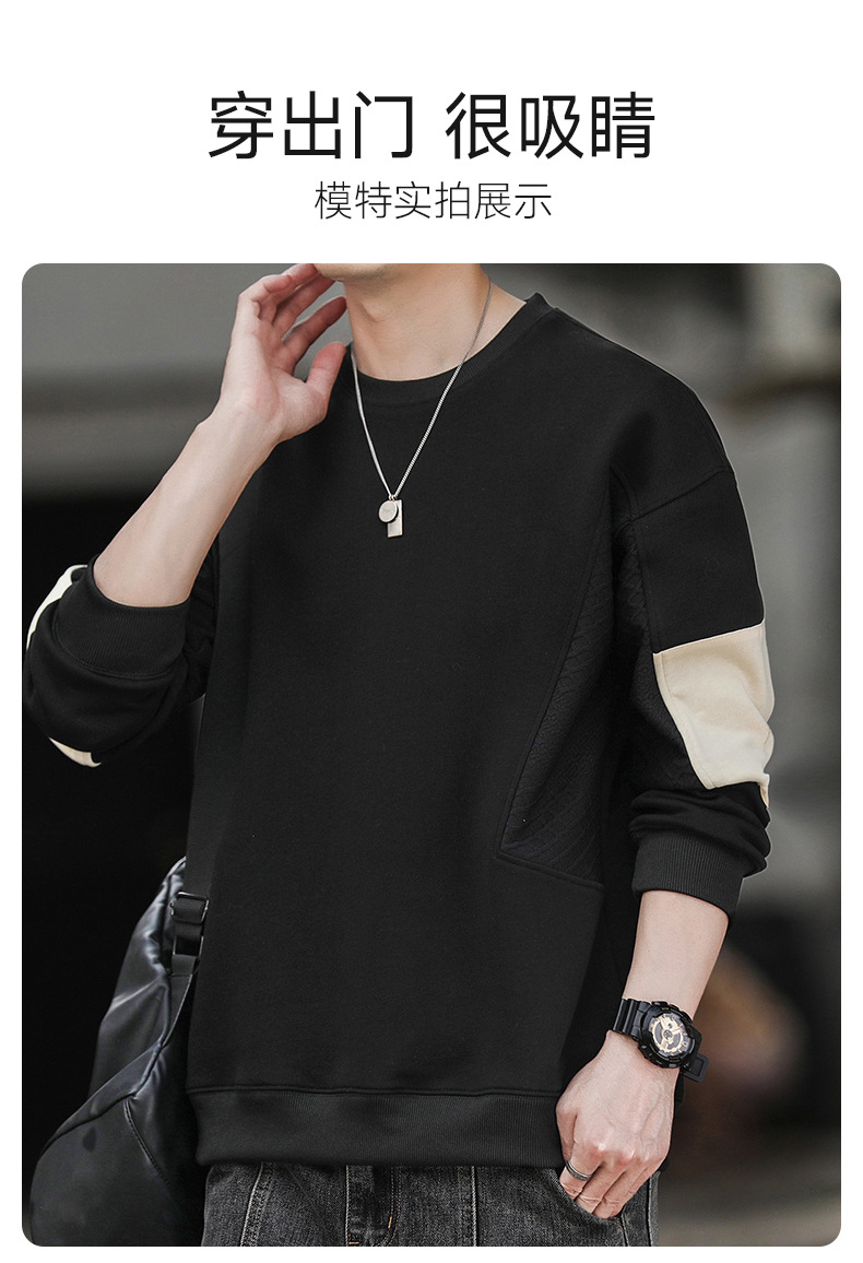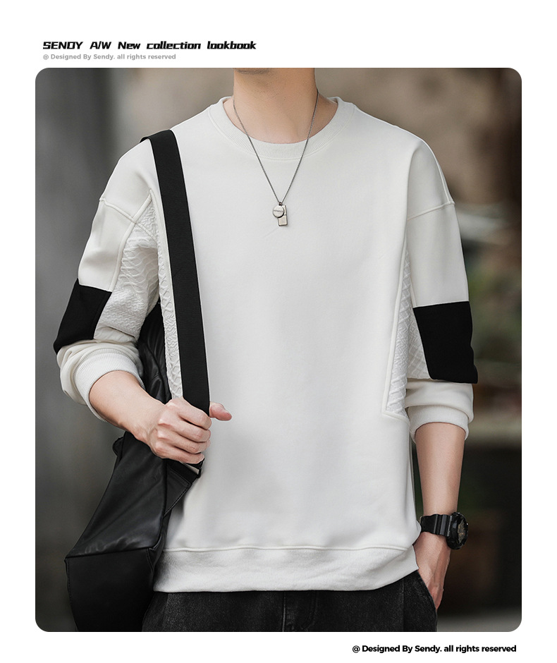 Hombre camiseta de cuello redondo camiseta de manga larga primavera y otoño nuevo suelto camiseta de fondo de tamaño grande Hong Kong marca de moda camiseta casual