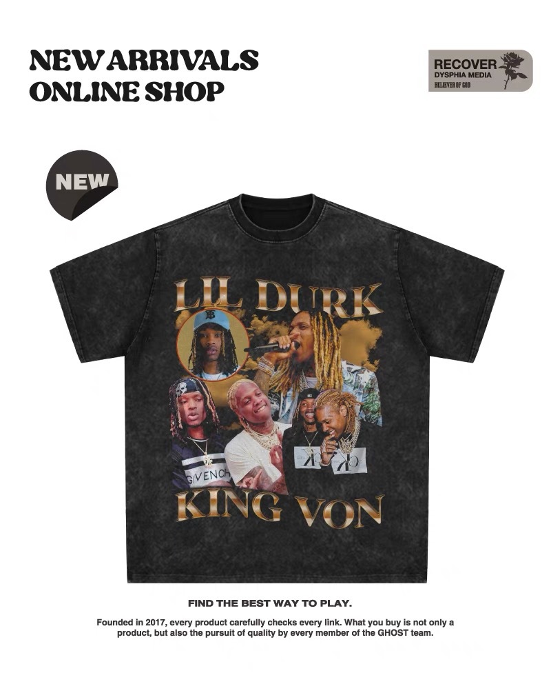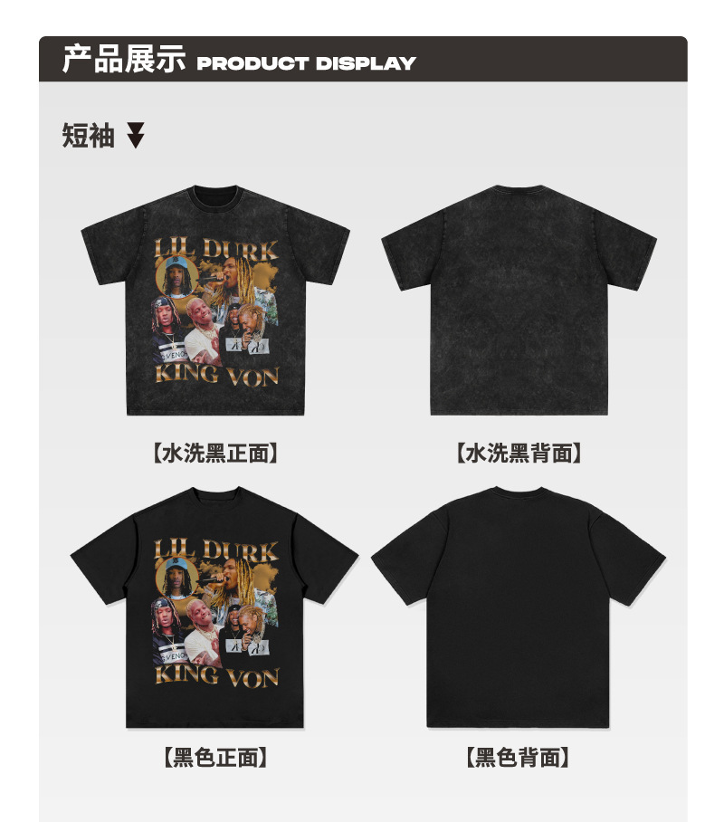 Hip-hop rap americano de estilo callejero estampado retro hace viejo lavado pesado suelto manga corta