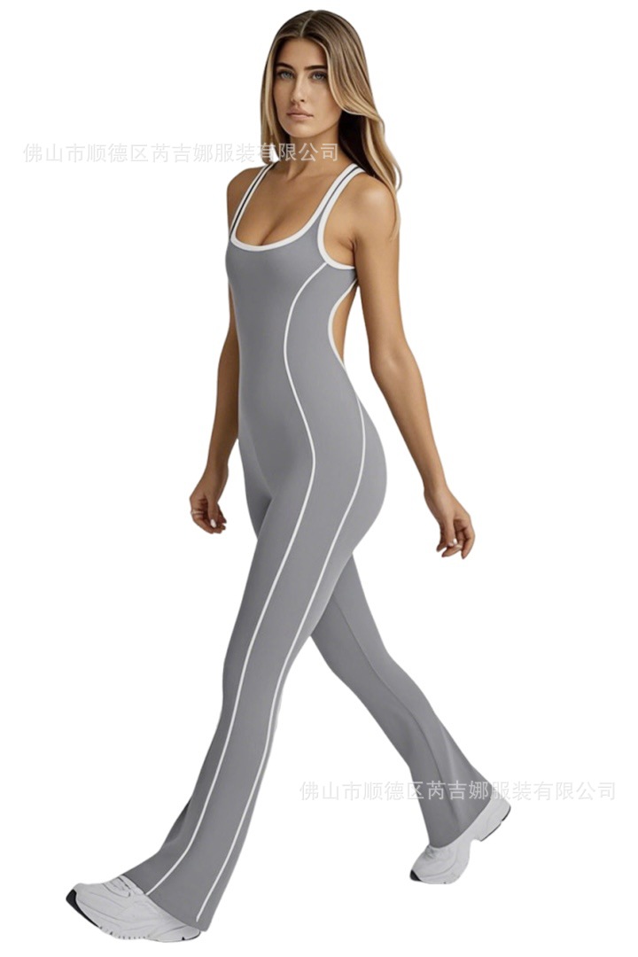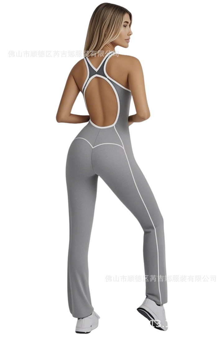 Uniforme de yoga transfronterizo europeo y americano, hermosa espalda femenina, sin espalda, color desnudo, ejercicio, fitness, una pieza, bocina, cinturón, almohadilla para el pecho